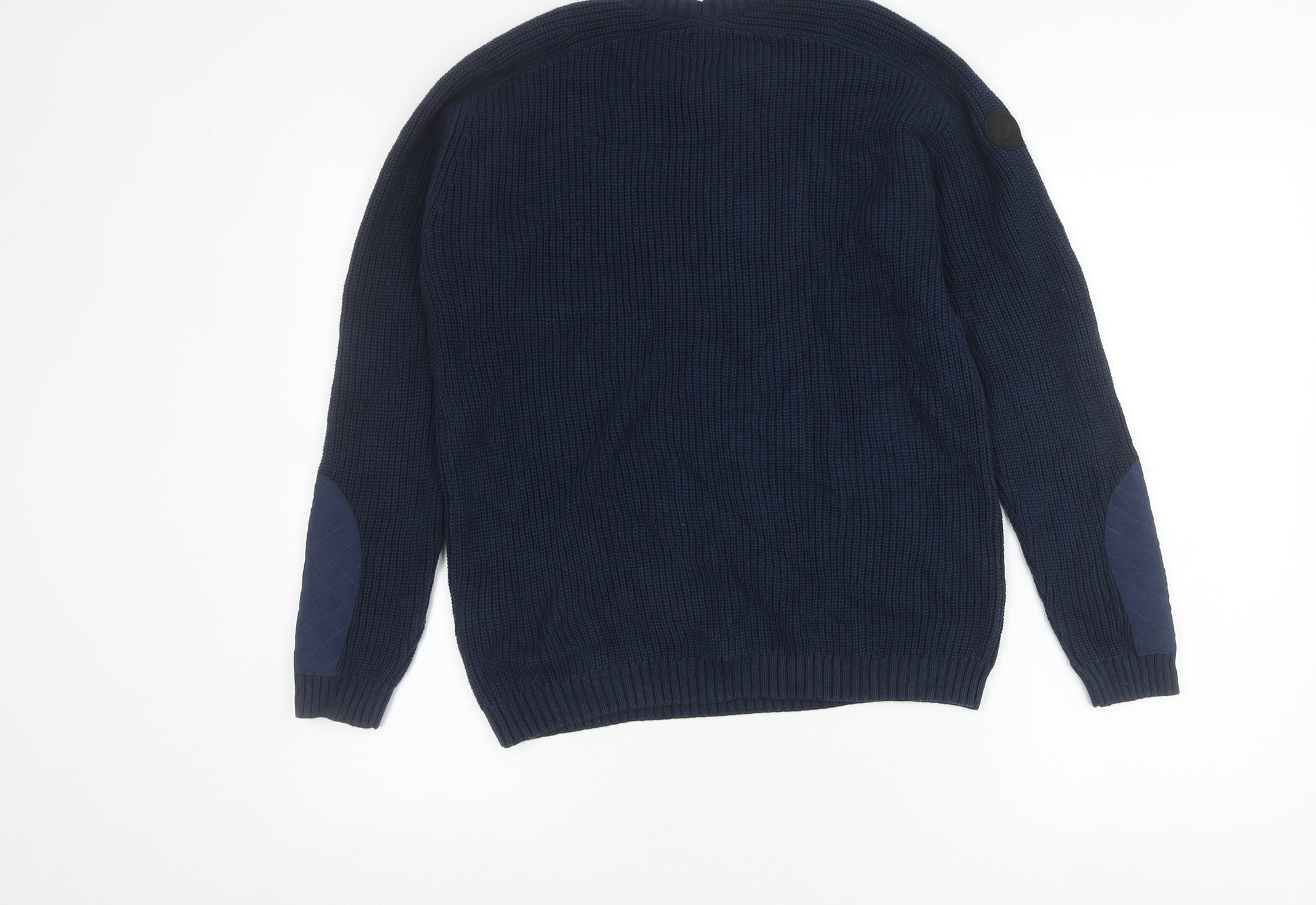 Elevate your child’s wardrobe with this stylish Firetrap Boys Crew Neck Jumper, crafted in a deep navy blue for a classic and versatile look. Designed with both style and practicality in mind, this pullover offers warmth and comfort, making it a perfect choice for everyday wear during the cooler months. Constructed from a quality cotton and acrylic blend, the jumper provides the softness of cotton while maintaining durable shape-retention from acrylic. This chunky-knit fabric ensures it remains a cosy yet breathable layering option, ideal for casual days, school, or weekend outings. The design is enhanced with thoughtful detailing, including quilted elbow patches in a tonal fabric, adding both durability and a touch of character to the garment. A matching quilted patch pocket sits on the chest, providing both functionality and a unique modern aesthetic. The ribbed crew neckline, cuffs, and hem deliver a snug and secure fit, keeping warmth locked in without compromising on comfort. With its relaxed regular fit, this jumper allows freedom of movement, ensuring it remains a practical option for active youngsters. The heavyweight knit makes it particularly well suited for autumn and winter wear, while the classic navy hue ensures it pairs effortlessly with jeans, chinos, or joggers. This Firetrap pullover is in excellent pre-owned condition with no visible stains, damage, or heavy signs of wear, although it does not feature its original retail tags. It measures approximately 25 inches in length, designed to fit comfortably for boys aged 13 years (EU 158). Machine washable for easy care, it is a low-maintenance and durable wardrobe staple designed to last. A versatile option for day-to-day layering, this jumper is the ultimate balance of durability, comfort, and stylish detail, perfect for boys looking for a jumper that feels both modern and practical.