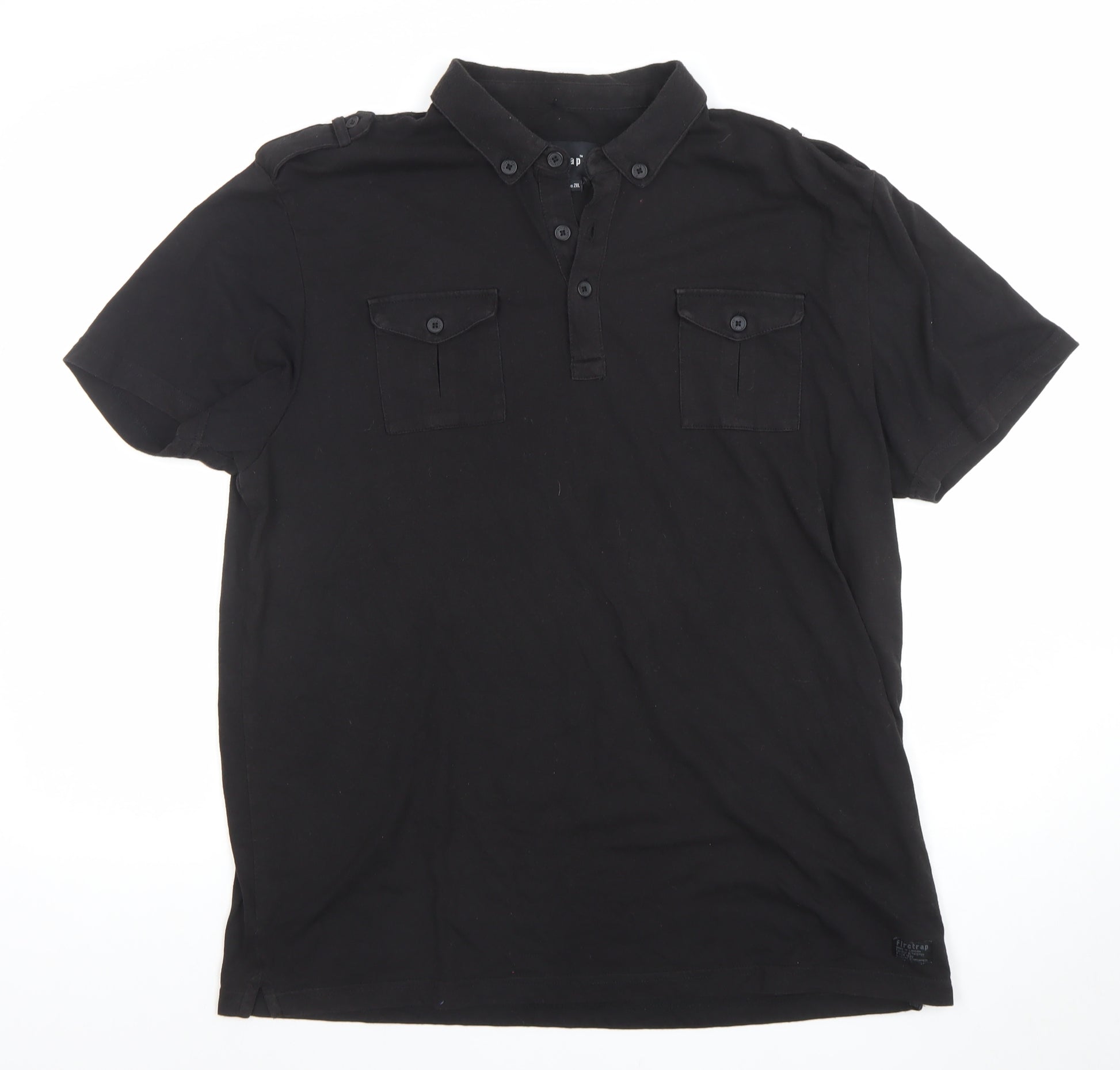 This Firetrap men’s black short sleeve polo shirt is a versatile and stylish addition to any wardrobe. Made from a comfortable blend of 60% cotton and 40% polyester, this polo offers both softness and durability. The breathable fabric ensures comfort whether worn casually or for everyday outings. Designed in a solid black colour, the polo features a classic collared neckline with a button placket, offering a timeless and smart look. It includes two front chest pockets with button flaps that enhance its structured, rugged design, typical of Firetrap’s modern casual fashion aesthetic.The polo comes in a UK size 2XL, offering a regular fit that provides a relaxed yet flattering silhouette suitable for most body types. The jersey fabric enhances flexibility and comfort, ensuring it moves well with the wearer. This piece is ideal for mild weather, making it suitable for spring, summer, and autumn wear. The simple but stylish features like the button accents, collared neck, and short sleeves make it a wardrobe essential for casual outings, weekend wear, or relaxed evenings.Machine washable and easy to care for, this Firetrap polo is convenience-friendly while maintaining style. Although pre-owned, it remains in very good condition with only light signs of wear and no noticeable damage. The overall look is clean and contemporary, retaining its dark, sleek appeal. Whether paired with jeans or chinos, this polo shirt provides a strong foundation for a masculine, understated look.Perfect for men who appreciate reliable everyday fashion with a hint of urban sophistication, this Firetrap polo delivers style, comfort, and value. A must-have for those who want a durable yet classic addition to their collection without compromising on quality or design.