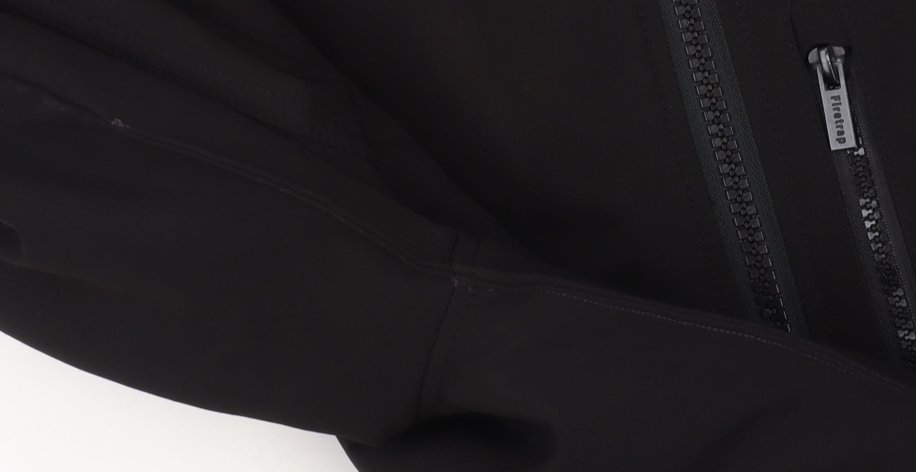 Upgrade your outerwear with this Firetrap men’s black bomber jacket, an effortlessly stylish piece perfect for modern casual wear. Designed in a classic bomber style, this jacket combines comfort, practicality and durability with its sleek minimalist design. Crafted from a high-quality softshell blend of 94% polyester and 6% elastane, it offers a flattering regular fit that adds flexibility and breathability for all-day comfort. The jacket features a smooth front full zip closure complemented by three secure zipped pockets for convenient storage. The ribbed hem, collar and cuffs add structure and contemporary appeal while maintaining a comfortable fit that keeps out the chill. The interior is lined in lightweight nylon, ensuring added warmth without bulk, making it ideal for layering through the transitional seasons of autumn and spring. Finished in a versatile solid black tone, it pairs easily with jeans, chinos or joggers to create a clean, urban-inspired look suitable for everyday wear, travel or relaxed weekends. The minimalist style is subtly highlighted with a tonal Firetrap sleeve logo and robust zip detailing for extra edge. With light signs of previous wear but in excellent overall condition, this men's jacket retains its smart finish and quality construction. Designed for comfort and practicality, this L-size Firetrap bomber jacket brings a balanced blend of fashion-forward aesthetics and everyday functionality, making it a reliable essential in your wardrobe. Whether you’re headed out for an evening stroll, meeting friends, or upgrading your daily style, this jacket adds the perfect layer of understated sophistication and comfort to your outfit.