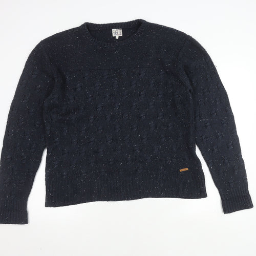 Step into sophistication and comfort with this Firetrap pullover jumper, designed exclusively for men. Boasting a classic crew neck and long sleeves, this navy blue jumper combines style and warmth in a versatile piece perfect for the chilly winter months. Its heavyweight, cable-knit design exudes quality craftsmanship, ensuring that not only will you look the part, but you'll feel snug too. Carefully crafted from a blend of 70% acrylic and 30% wool, this knit jumper is soft to the touch and maintains its shape, providing day-long comfort for any casual occasion. The regular fit further enhances its ease of wear, making it suitable for a variety of body types. The lack of any bold pattern ensures that this classic piece pairs well with any outfit, whether you're heading out for an informal gathering or simply relaxing at home. Though pre-loved, this jumper is in excellent condition, with no visible signs of wear or damage, offering you style and durability at a remarkable value. This Firetrap jumper is not just a garment; it's an investment in enduring style and comfort.