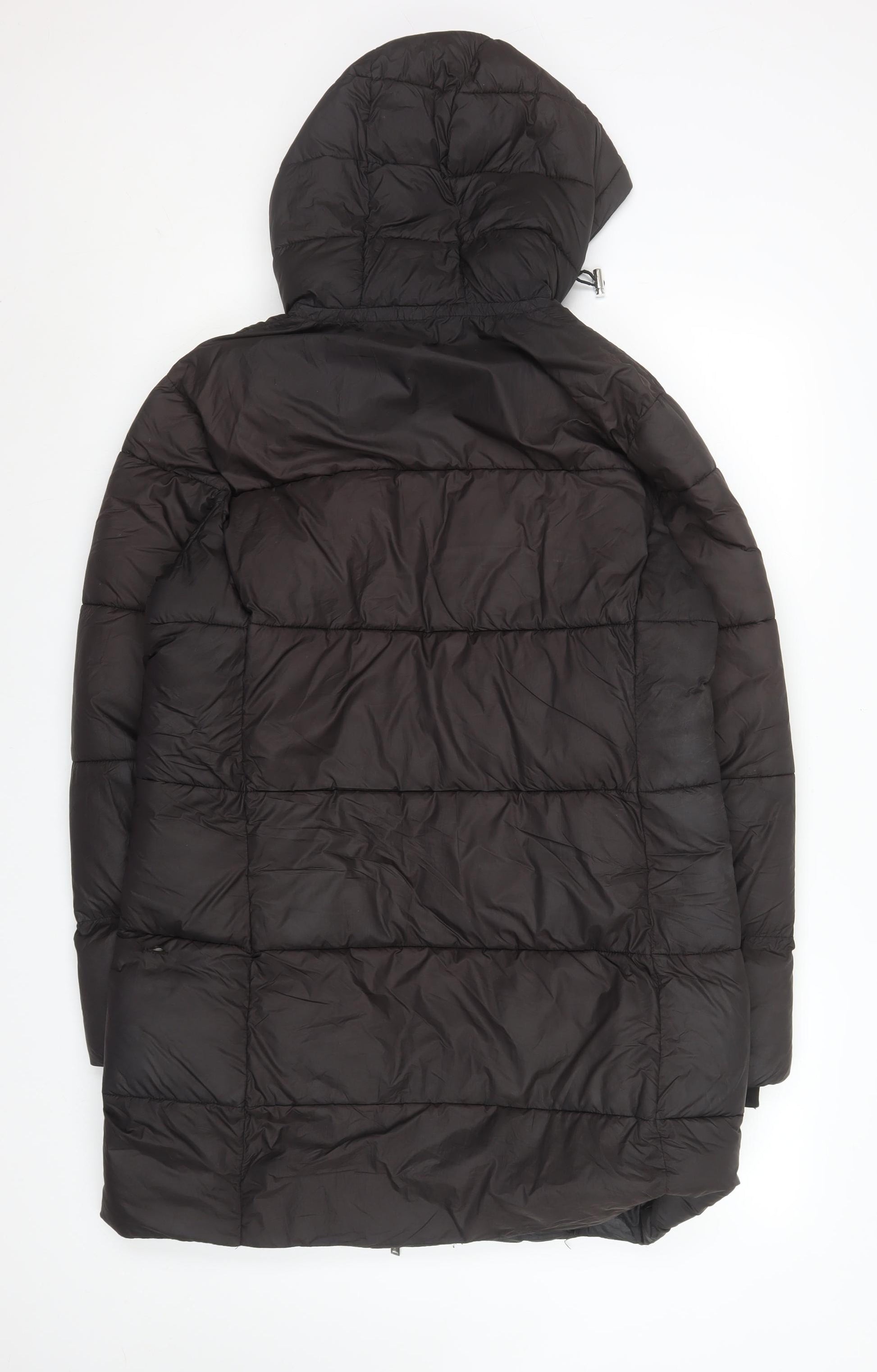 Womens Black Puffer Jacket Coat Size 12 Hooded Long Zip Winter