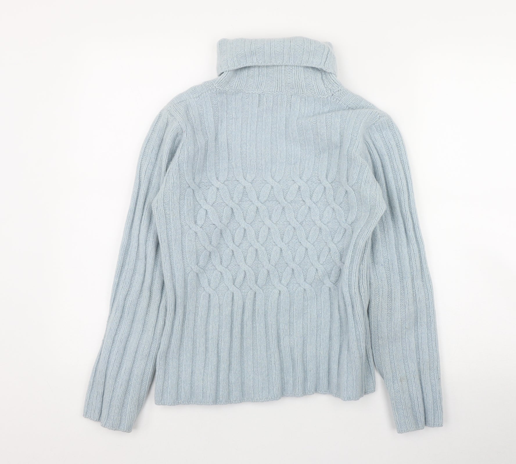 Womens Blue Roll Neck Wool Pullover Jumper Size M