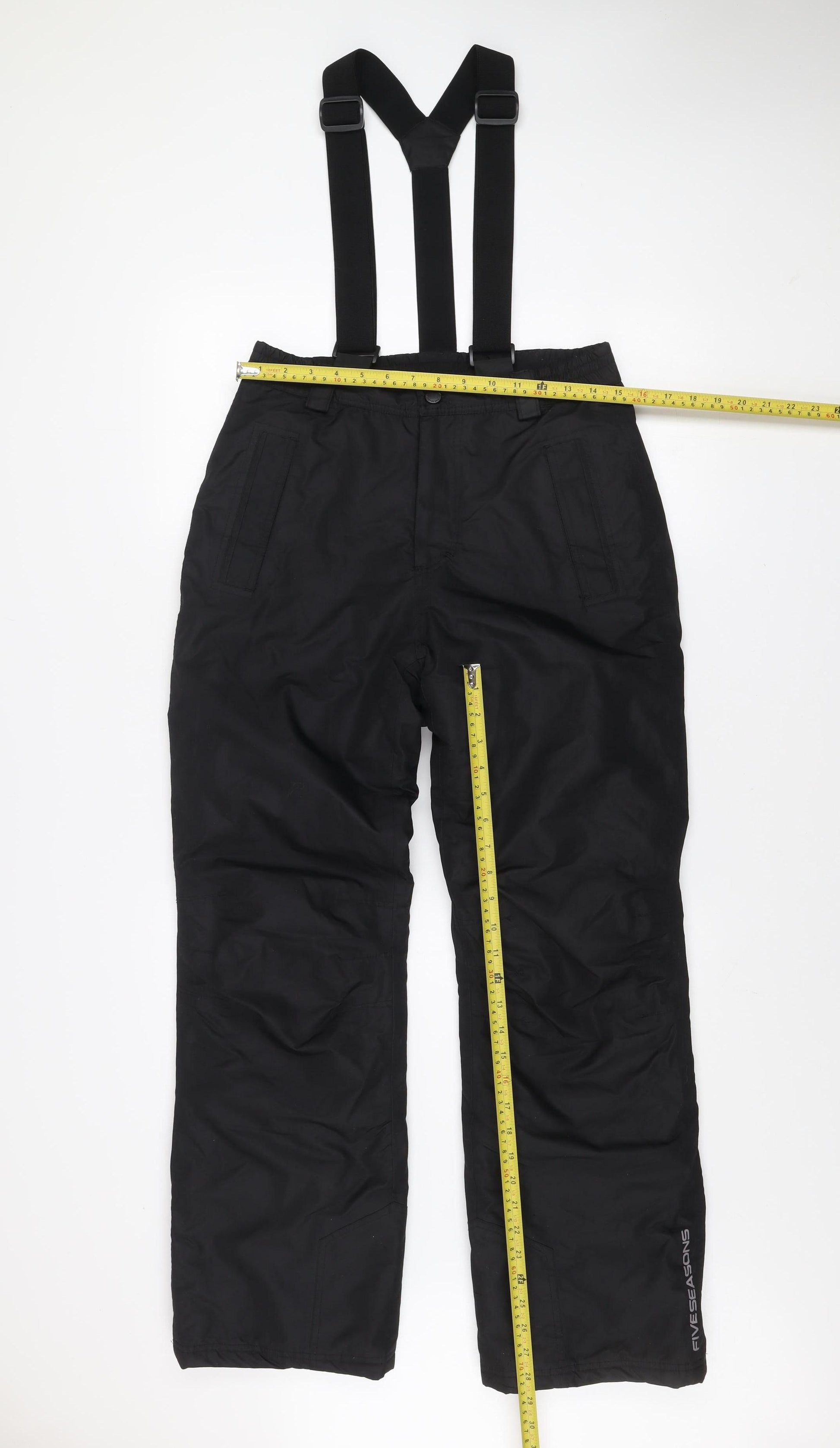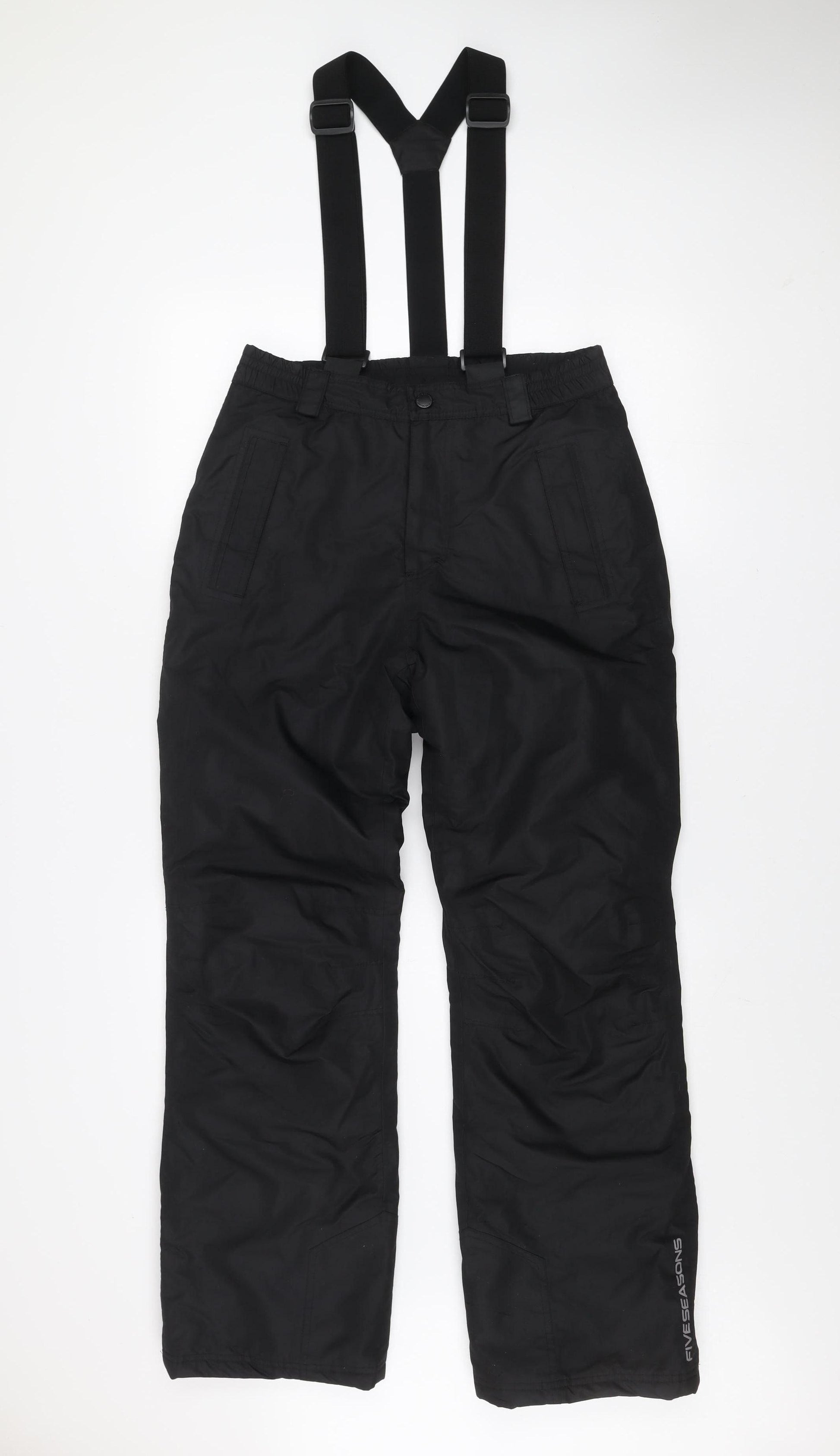 Stay warm, dry, and comfortable on the slopes or during cold-weather adventures with these high-quality Five Seasons women’s snow pants. Designed in a classic black shade, these trousers combine durability and comfort for superior performance in winter conditions. Made from 100% polyester fabric, they are both waterproof and windproof, ensuring reliable protection from snow and rain while maintaining breathability for ease of movement. Featuring an adjustable waist with secure elastic side panels and sturdy suspenders, these trousers offer a custom fit and optimal comfort for extended wear. The soft lining provides added insulation to retain heat, making them ideal for skiing, snowboarding, or any outdoor winter activity. Functional zip and pocket details offer convenience for carrying essentials, while the straight leg design ensures ease of layering over boots. The trousers exhibit light signs of wear consistent with careful previous use but remain in excellent overall condition with no noticeable damage. Five Seasons’ commitment to functional outdoor fashion ensures these trousers deliver both performance and style for active women. Whether hitting the slopes, hiking, or simply braving cold and wet weather, they provide practical versatility and sleek design. An essential addition to any winter wardrobe, these black snow pants are perfect for activewear enthusiasts seeking reliability, warmth, and effortless cool-weather comfort.