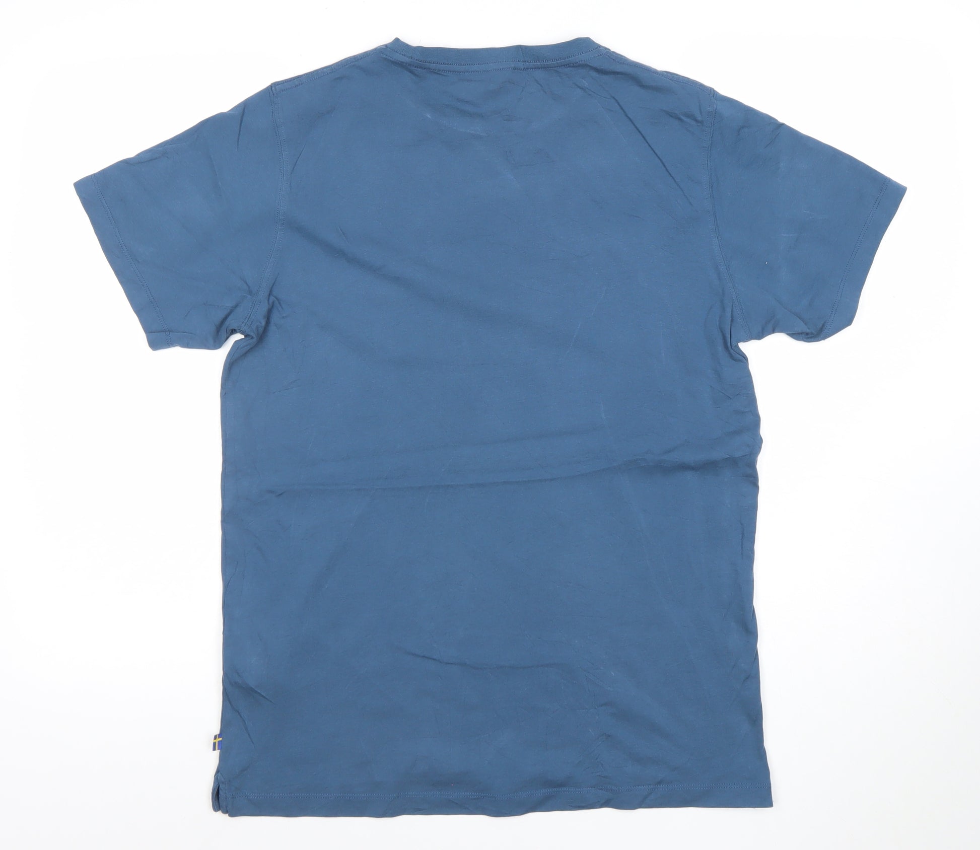 Men's Blue Cotton Graphic Outdoor T-Shirt Size L