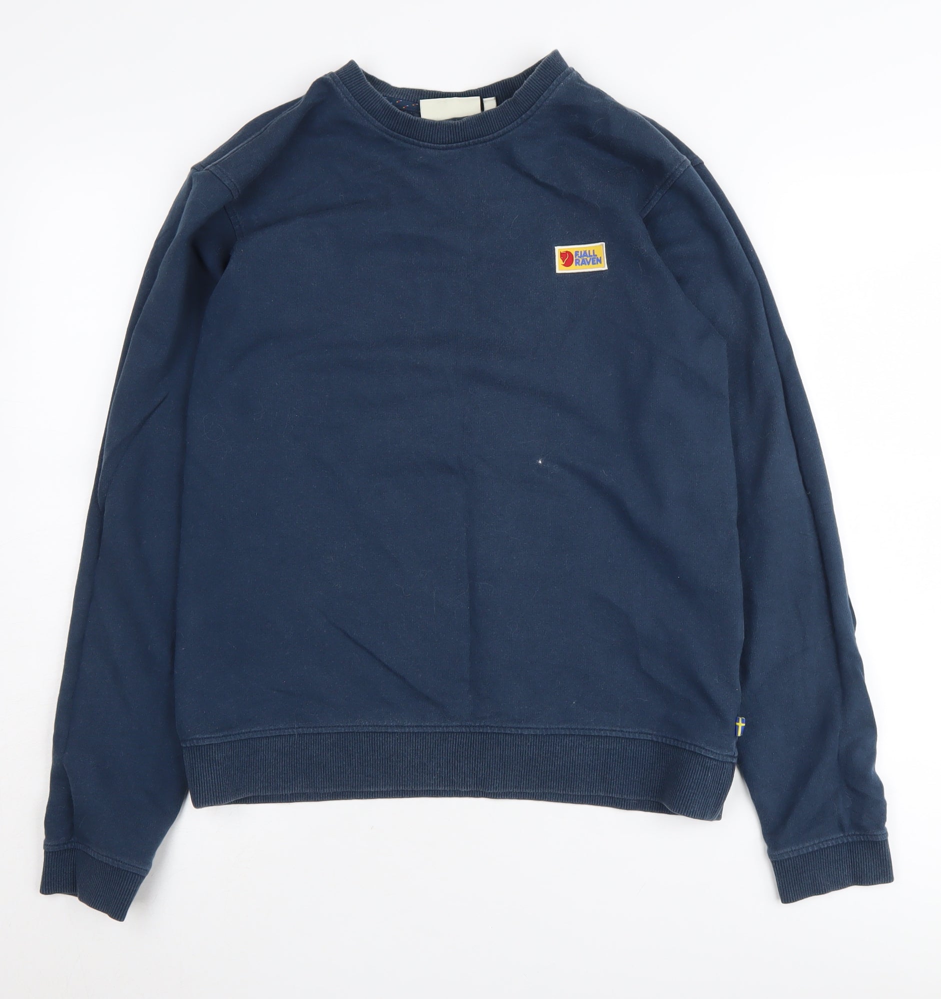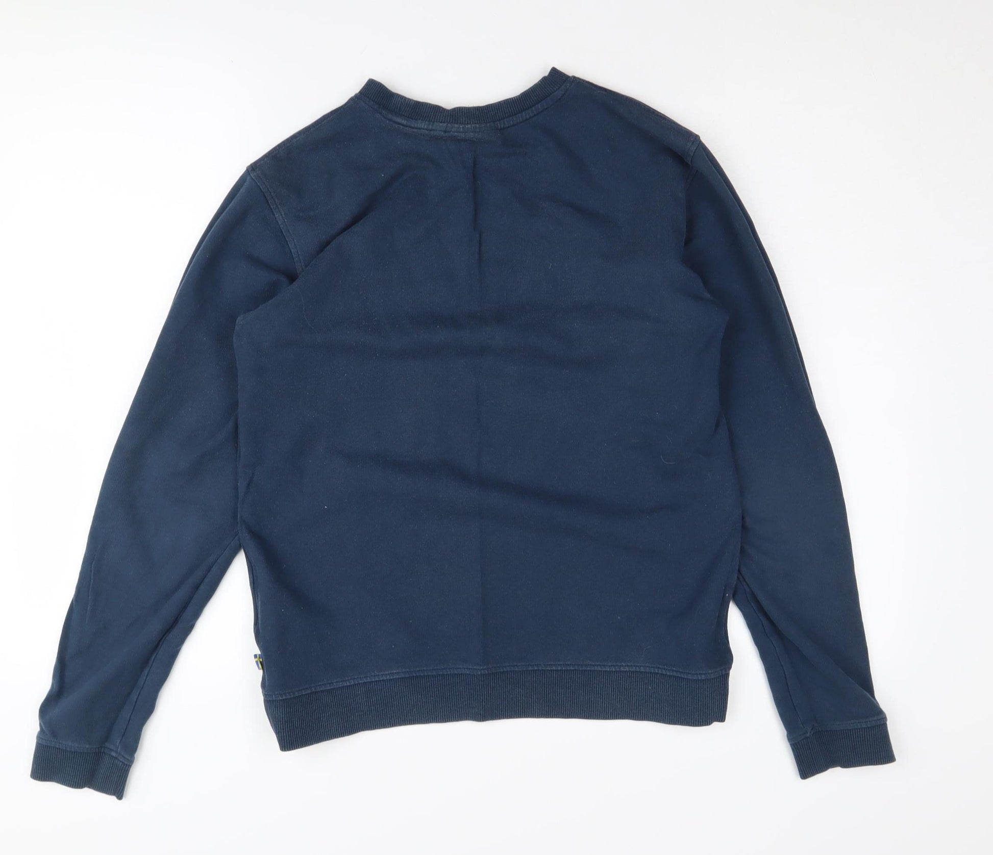Experience the perfect blend of style and comfort with this Fjällräven Men's Blue Pullover Sweatshirt. Designed for the modern man, it features a classic crew neck and long sleeves, making it a versatile addition to any wardrobe. The deep blue jersey fabric offers a sleek, understated look that pairs effortlessly with both casual and smart-casual outfits. Made from 100% cotton, this sweatshirt ensures you stay warm and comfortable throughout the seasons. The regular fit provides ample room without compromising on style, while the seamless design enhances durability. Ideal for all-season wear, the sweatshirt is machine washable, making it a practical choice for everyday use. Despite being slightly worn, the sweatshirt remains in excellent condition, ready to provide warmth and fashion-forward flair for any occasion. Don't miss out on the chance to own this stylish piece by Fjällräven, renowned for its quality and timeless design.