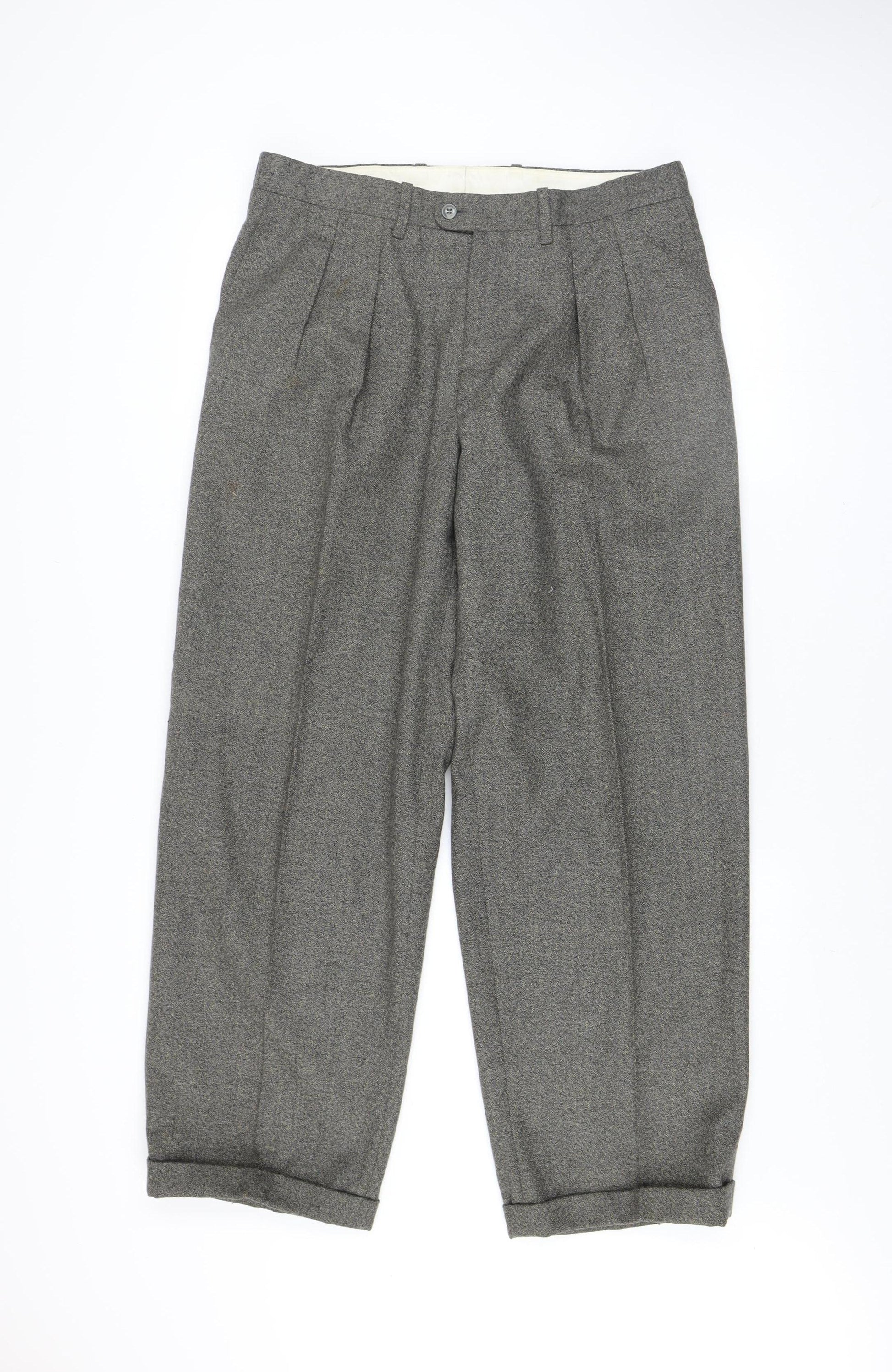 Men's Grey Wool Pleated Dress Trousers Size 34