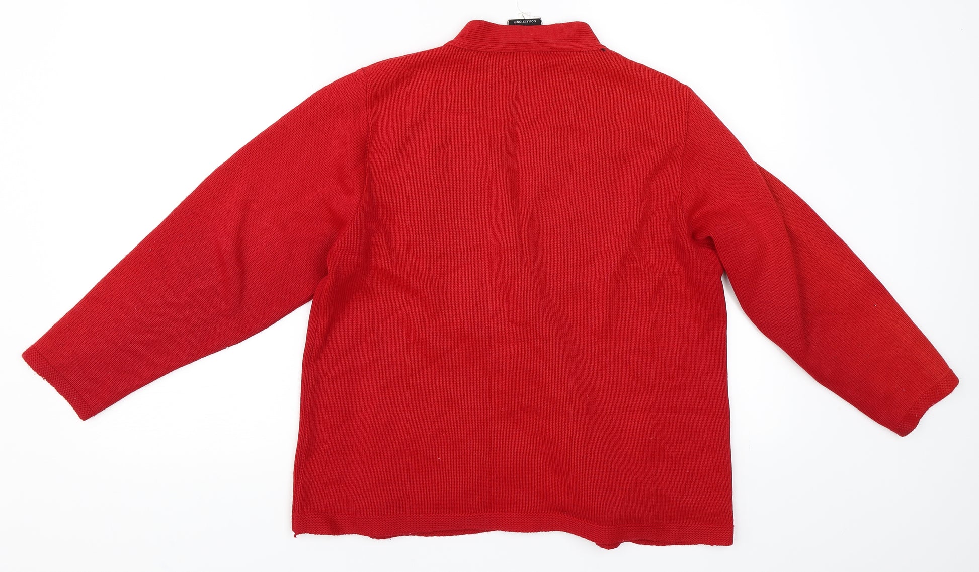 Talbots Women Red Lambswool Blend Cable Knit Cardigan L