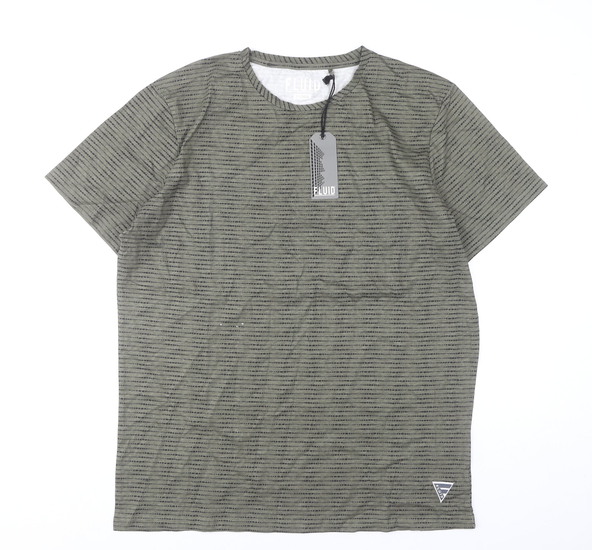 Elevate your casual wardrobe with this stylish Fluid men's XL T-shirt, designed for comfort and effortless style. Crafted from 100% cotton, this lightweight and breathable tee ensures maximum comfort, making it perfect for all-day wear across the warmer months and beyond. The breathable jersey fabric enhances softness while providing durability for everyday use.Boasting a modern striped pattern in a versatile green hue, this T-shirt pairs easily with jeans, shorts, or joggers for a relaxed yet put-together look. The classic crew neck design and short sleeves add to its timeless silhouette, while the regular fit ensures it flatters without feeling restrictive. The subtle Fluid logo accent near the hem adds a discreet designer touch without overpowering the minimalist style.With its soft fabric and quality construction, this T-shirt is a great choice for spring, summer, and autumn outings, whether you're heading to the park, meeting friends, or enjoying a weekend away. The machine-washable cotton ensures easy care and long-lasting wear, while the breathable material keeps you cool and comfortable throughout the day.Perfect for layering under jackets or wearing solo, this versatile men’s green striped tee will quickly become a go-to in your wardrobe. Designed for men who value both comfort and understated fashion, this piece offers a practical yet stylish addition to your collection. Whether dressing it up with chinos or keeping it casual with trainers and denim, it will suit a wide range of outfits and occasions.If you're seeking a dependable, well-made T-shirt that delivers on both style and substance, the Fluid men's cotton T-shirt is an ideal choice. Effortlessly wearable and easy to style, it’s a wardrobe essential that combines contemporary design with everyday comfort.