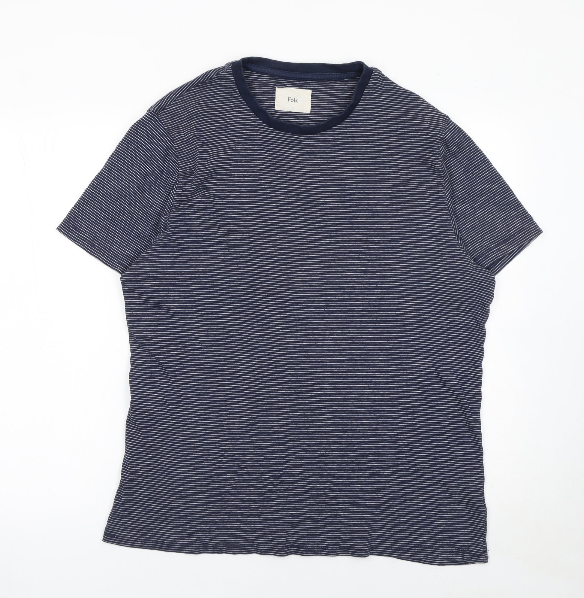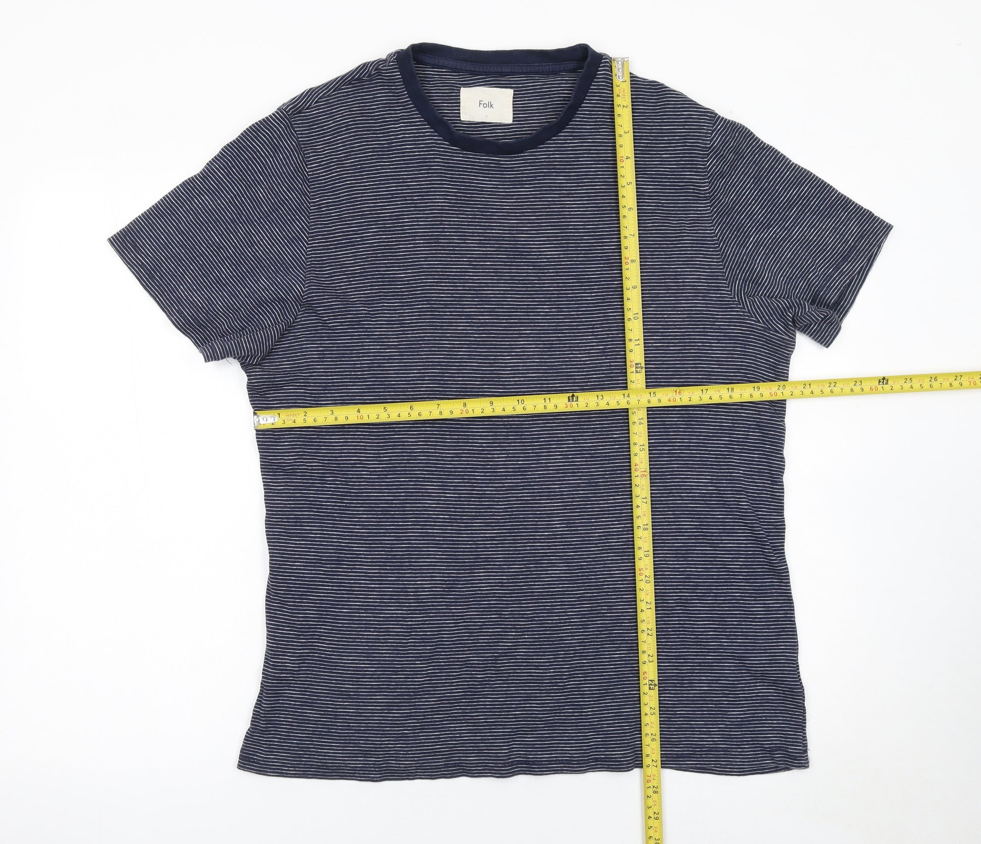 This Folk Men’s Blue Striped Short Sleeve T-Shirt offers a timeless and versatile addition to your wardrobe. Crafted from 100% cotton, it provides a soft, breathable feel and a high-quality finish that ensures comfort all day long. Designed in a classic striped pattern in shades of blue, this tee brings understated style that’s suitable for casual wear, holidays, or layering beneath a jacket. The crew neck design gives it a relaxed feel, while the short sleeves make it perfect for warmer seasons, from spring through summer. The lightweight jersey fabric enhances stretch and ease of movement, ensuring a comfortable and flattering fit. The top’s Regular fit and minimalist detailing make it easy to pair with jeans, chinos, or shorts, making it an adaptable staple for both off-duty days and polished casual looks. Known for their craftsmanship and attention to detail, Folk clothing blends quality fabrics with contemporary design that stands the test of time. This particular piece encapsulates the brand’s appreciation for clean lines and durable basics. In excellent pre-owned condition, it shows only minimal signs of light use with no visible flaws or damage, reflecting careful wear and proper care. Ideal for any man seeking a balance between quality, comfort, and effortless styling, this Folk T-shirt represents subtle sophistication with a modern edge. Whether you’re dressing for a relaxed evening out or enjoying a day in the sun, its breathable cotton construction ensures you stay cool and comfortable throughout the day. Machine washable for easy care, this is a practical and enduring choice for everyday wear or weekend dressing. Add this versatile T-shirt to your collection and enjoy understated style infused with Folk’s signature craftsmanship.