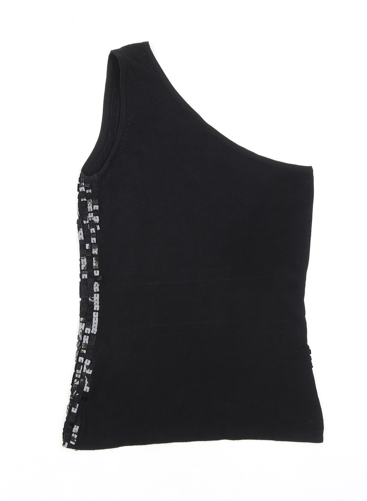 Womens Black Viscose Basic Tank Size 12 One Shoulder