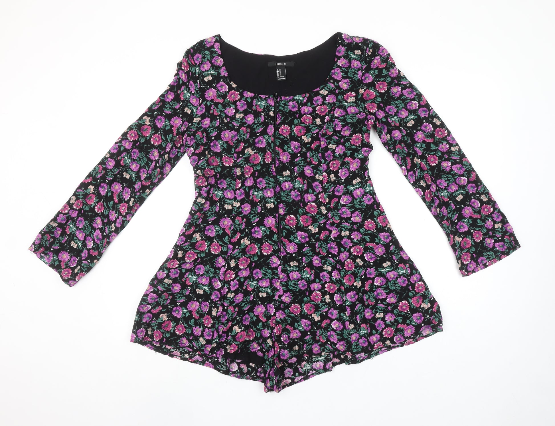 Forever 21 Women's Black Floral Long Sleeve Playsuit M