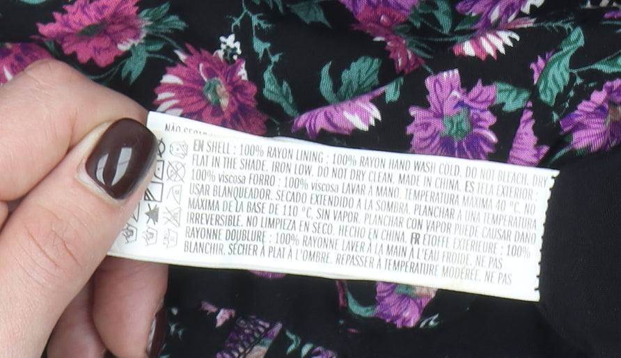 This Forever 21 women’s long sleeve playsuit offers the perfect combination of comfort and playful chic. Crafted from lightweight 100% rayon fabric, it features a breathable woven texture that feels soft and flowing, ideal for warmer weather. The floral pattern, set against a classic black background, showcases vibrant purple, pink, and green hues that bring a touch of feminine charm to any outfit. The scoop neckline and flattering fit create a versatile silhouette, while the back zip fastening adds both practicality and style. The long sleeves make it easy to transition this piece across seasons—from the breezy days of spring to cool summer evenings. Designed for a regular fit, this playsuit is ideal for day-to-night wear, offering effortless elegance whether paired with sandals or heeled boots. The floral print lends a romantic boho flair, perfect for casual outings, picnics, or social gatherings. The rayon fabric ensures a comfortable drape that flatters different body shapes, embodying Forever 21’s signature youthful appeal. Finished with neat detailing and a concealed zip closure for a smooth look, it strikes a balance between relaxed and refined. With its bright botanical print and easy-wear silhouette, this playsuit can be styled with minimal accessories or layered with a denim jacket for a more casual twist. Its airy texture and flattering cut make it a timeless wardrobe addition for those who appreciate floral fashion statements with modern functionality. An effortlessly stylish piece for women who love to keep their look fresh, feminine, and fashion-forward year-round.