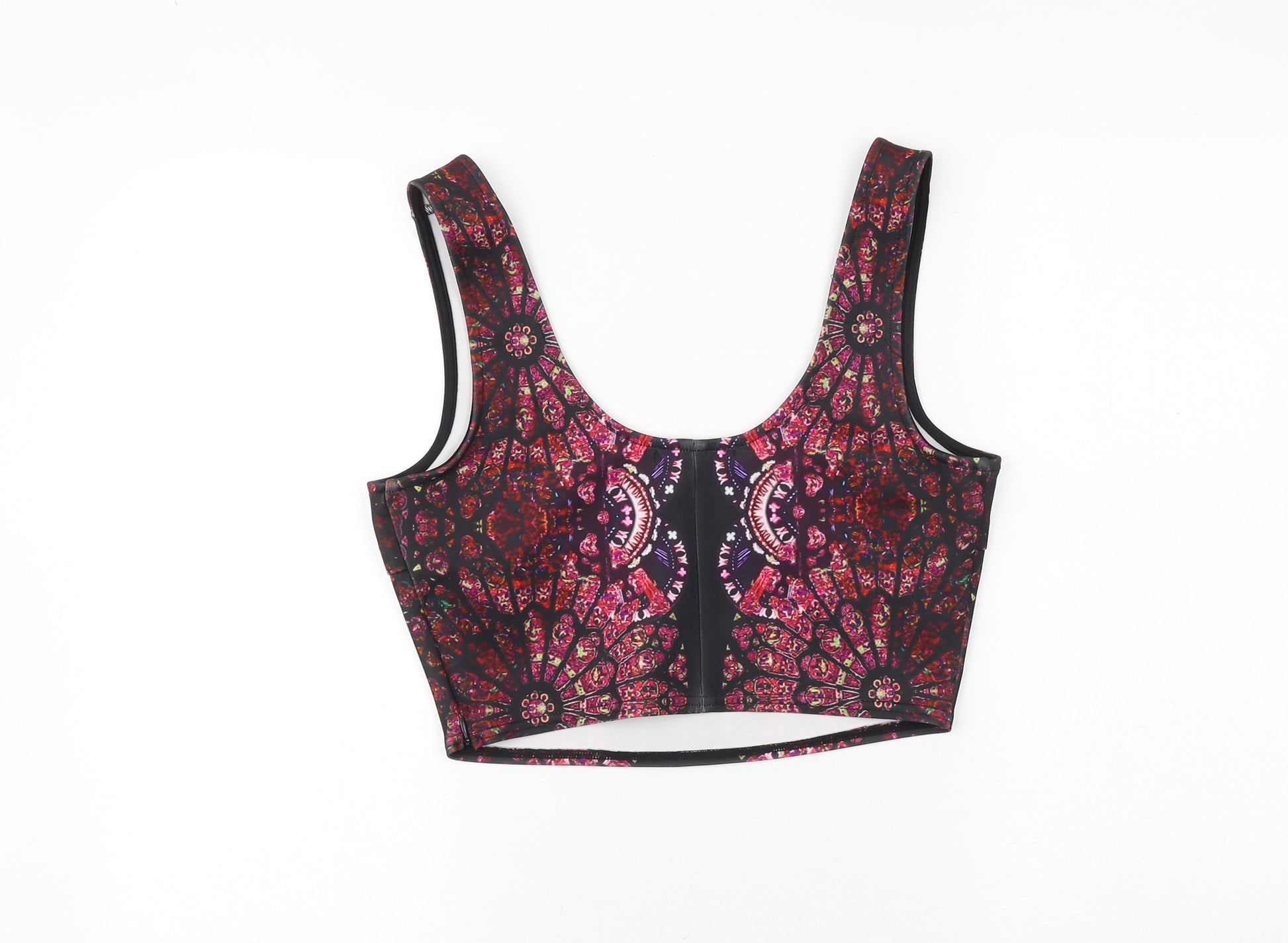 Womens Black Geometric Polyester Basic Tank Size M Round Neck