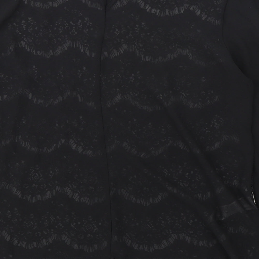 Womens Black Polyester Basic Blouse Size M Mock Neck - Lace Front