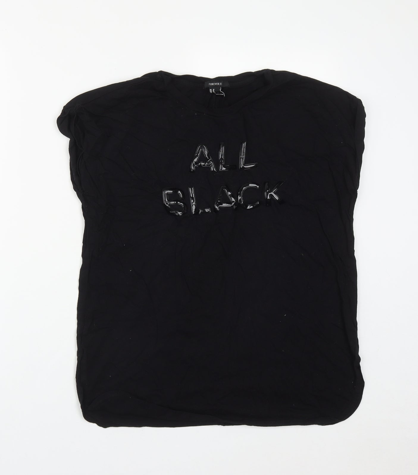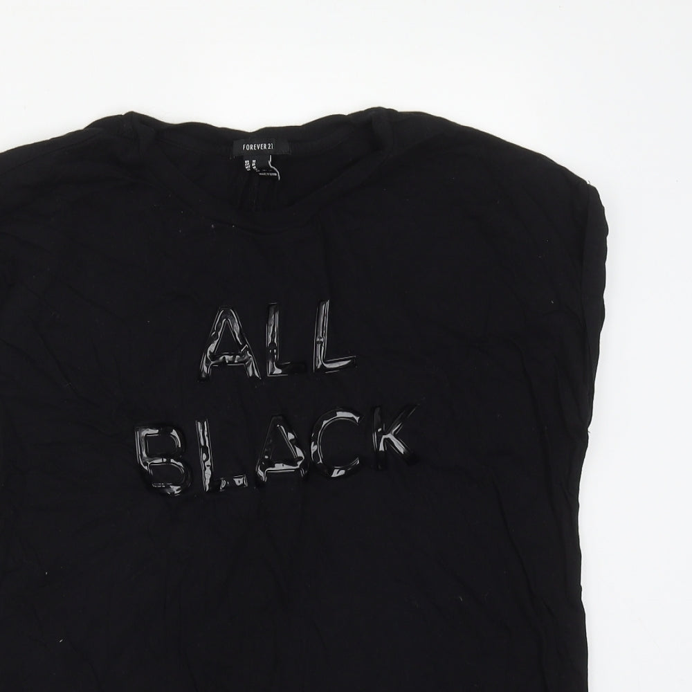 Womens Black Polyester Basic T-Shirt Size M Round Neck