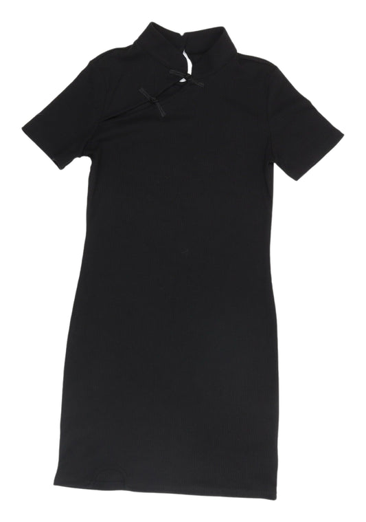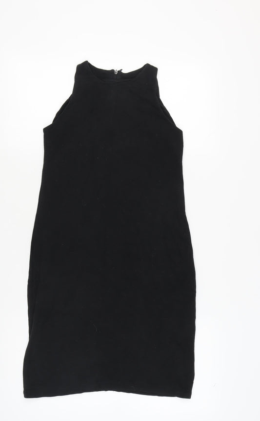 Zara Womens Black Polyester Slip Dress Size M Square Neck Zip