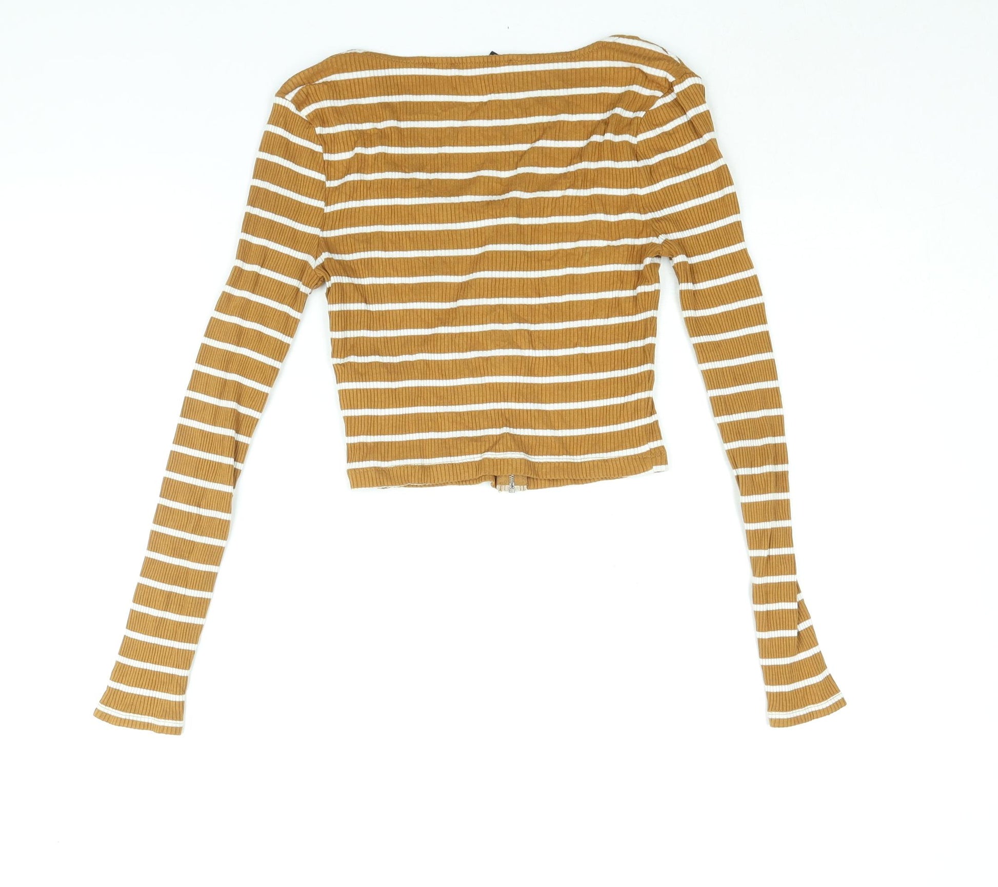 Womens Yellow Striped Polyester Basic Blouse Size S Scoop Neck