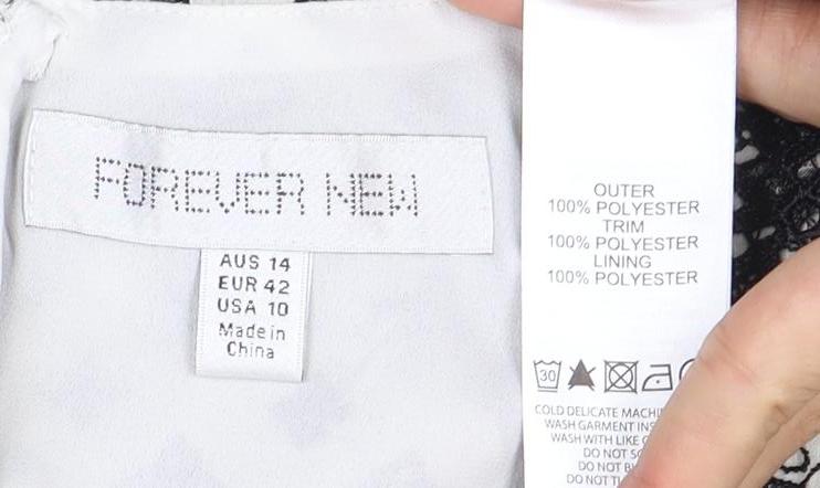 Step into elegance with this Forever New Women's Dress, designed to make a statement at any party or cocktail event. In a chic combination of black and white, this dress features a sophisticated geometric pattern that adds a modern flair to a classic style. The dress falls to a short length, offering a playful touch while revealing just the right amount of leg. Crafted from 100% polyester, the fabric is both durable and breathable, allowing you to stay comfortable throughout the evening. The long sleeves provide an elegant silhouette, making this dress suitable for various occasions, from casual gatherings to more formal events. Enhanced with delicate lace accents, this dress is lined to ensure a smooth and flattering fit. Its V-neckline adds a touch of sophistication, while the zip closure at the back ensures ease of wear. Perfectly suited for women looking for a stylish yet comfortable dress, this piece is machine washable for convenience. Whether you're attending a wedding, hosting a dinner party, or simply enjoying a night out on the town, this Forever New dress is the perfect addition to your wardrobe. Pair it with your favourite heels and accessories to complete the look.
