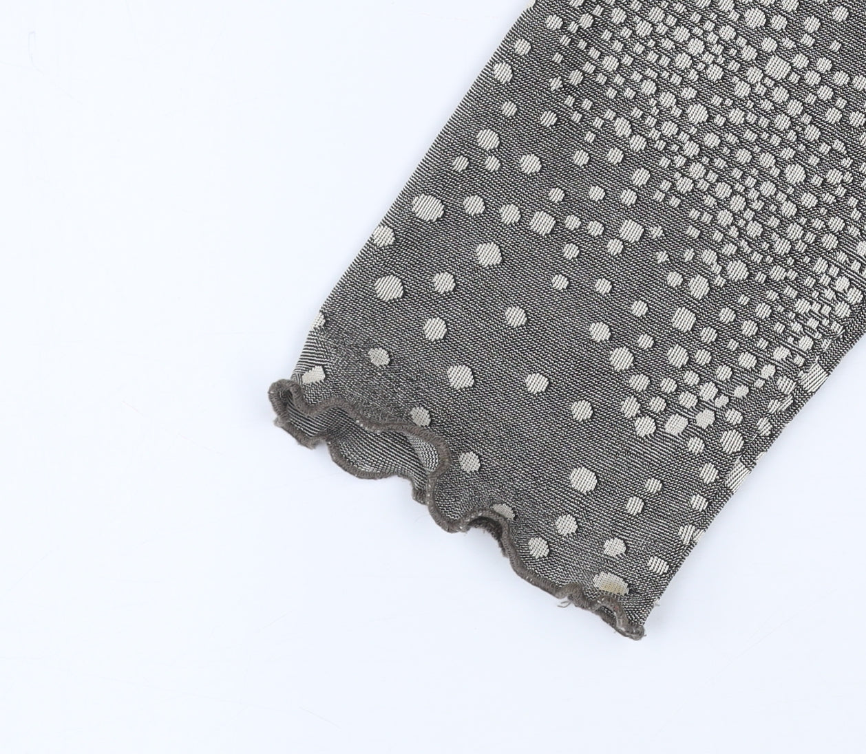 Add a touch of understated style to your wardrobe with this lovely Fosby Women’s Grey Polka Dot Long Sleeve Top in size 14. Crafted from a soft and breathable jersey blend of polyester and elastane, this piece offers a comfortable stretch fit that moves effortlessly with your body. The textured fabric gives it a distinctive yet elegant finish, perfect for everyday wear or relaxed evenings out. Designed in a flattering regular fit, it features a classic round neckline and full-length sleeves for versatile styling throughout the year. The playful polka dot pattern adds a subtle charm, while the ruffled edges at the cuffs and hem introduce a delicate feminine touch. Ideal for layering, pair it with smart trousers for a polished look or team it with jeans for a more casual vibe. Being machine washable, it’s practical for regular wear and low-maintenance too. Perfect for spring, summer, or autumn, this lightweight top makes a stylish yet comfortable option for casual occasions and day-to-day wear. Despite being pre-owned, the piece is in excellent condition with no damage visible, offering great value. A versatile neutral grey hue ensures it can easily coordinate with other wardrobe staples. Whether you’re dressing up for a weekend outing or keeping it simple for errands, this Fosby long-sleeve polka dot top adds an effortlessly chic touch. Don’t miss out on this wardrobe essential that combines comfort, flattering fit, and easy elegance—ready to become a go-to favourite in your casual rotation.