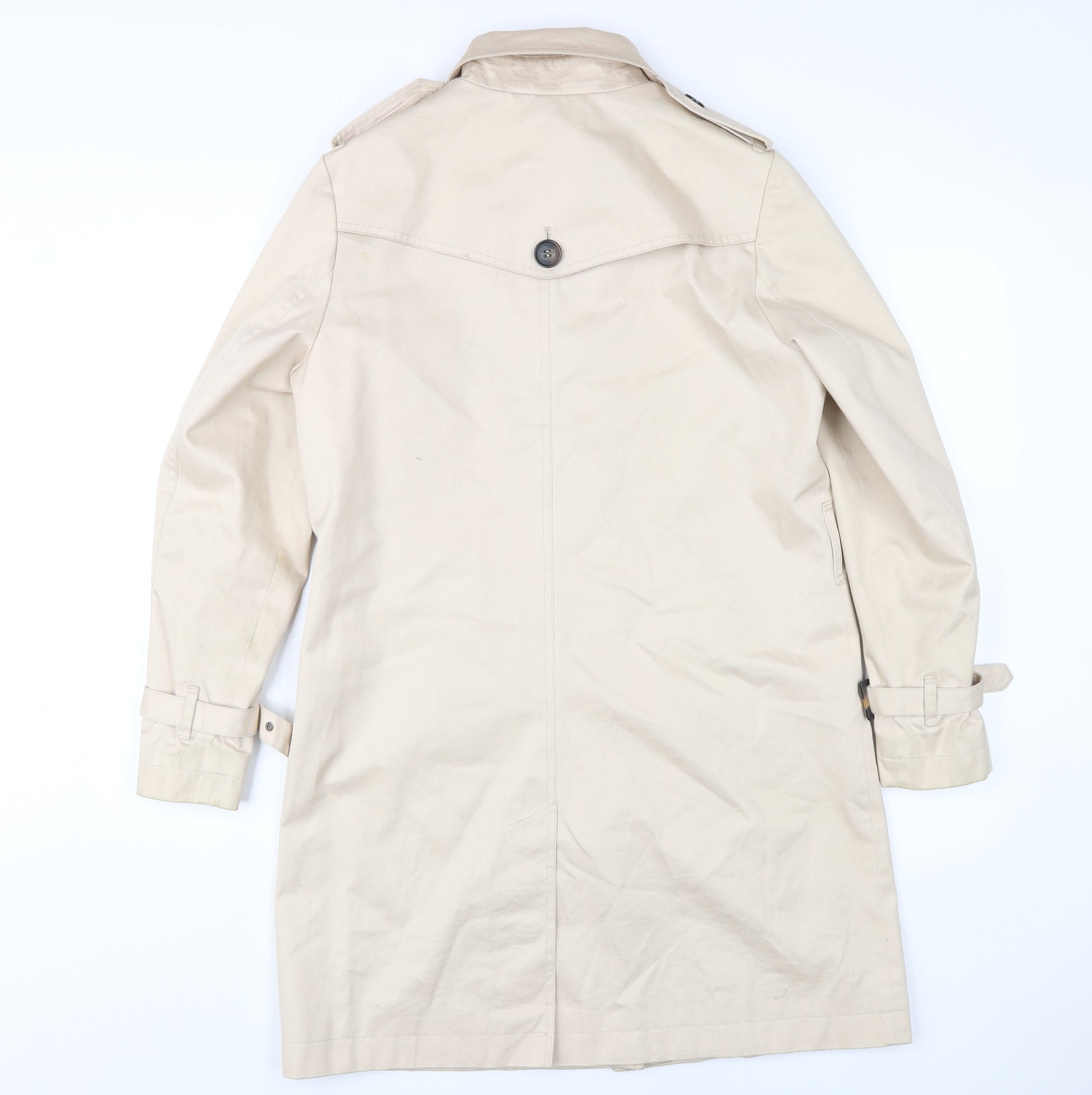 Step out in style with this classic Beige Trench Coat by Four Seasons London. Designed for Women, this long coat combines chic elegance with functionality, making it perfect for both Business and Casual occasions. Made from 100% Cotton Twill, it ensures breathable comfort while maintaining a polished look. The Polyester lining adds durability and adds a smooth touch against your skin. Featuring a collared design with buckle and button accents, this coat offers a timeless style that's accentuated by belted details, creating a flattering silhouette. The long sleeves offer warmth, making it suitable for Autumn and Spring wear. Despite its Good condition, there are some minor stains visible, which have been considered in the pricing. Care is a breeze with its machine washable fabric, ensuring that maintenance is never taxing on your schedule. Whether heading to a meeting or enjoying a casual day out, this versatile outerwear is ready to elevate your wardrobe. Dare to impress with its classic charm and enjoy the practical comfort it promises, reminding you that sometimes, the simplest pieces make the biggest statements. Don't miss the opportunity to make it yours at an attractive price of £59.75.