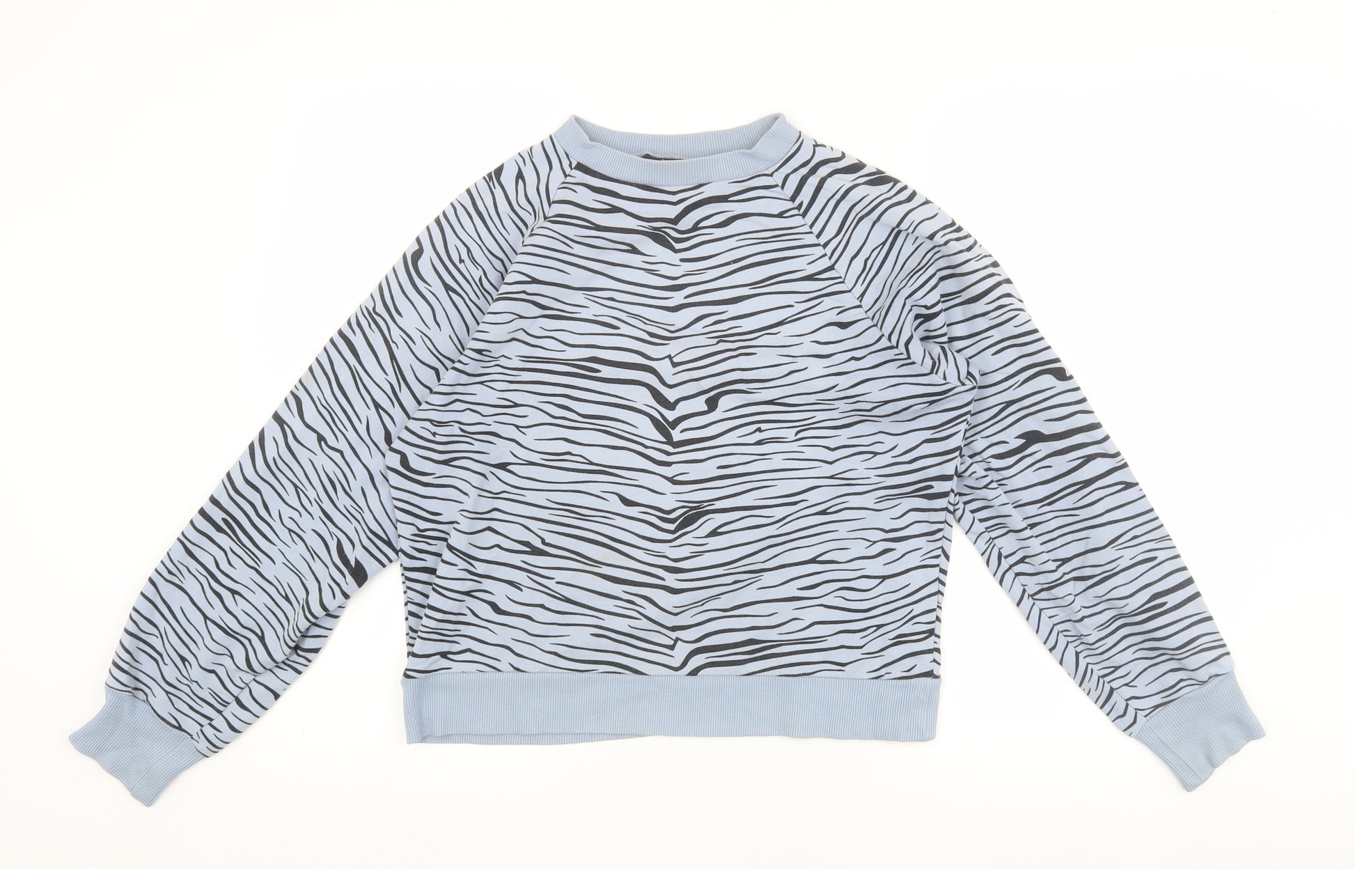 Step out in style with this unique Fox & Taylor Women's Blue Pullover Sweatshirt. Designed for comfort and fashion, this sweatshirt features an eye-catching animal print pattern in a soothing blue hue. Crafted from a blend of cotton, modal, and elastane, it ensures a soft, stretchy feel, perfect for casual outings or cozy days at home. The jersey fabric provides durability, while the raglan sleeves add a trendy touch. With its long sleeves and crew neckline, it's a versatile piece suitable for all seasons. Ideal for animal print enthusiasts and those looking to make a fashion statement. This new with tags sweatshirt is the perfect addition to your wardrobe, offering a combination of style and practicality.