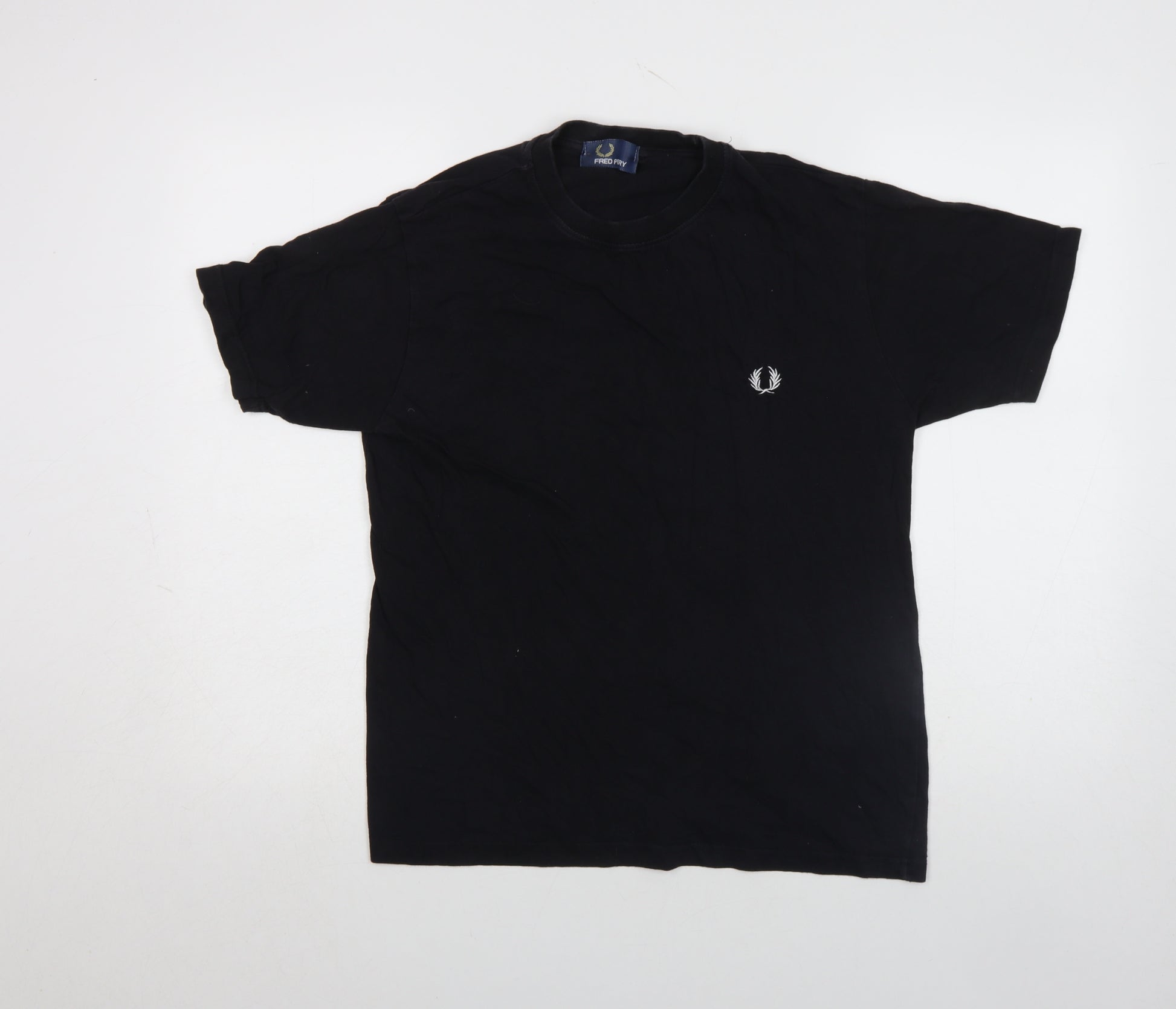 This Fred Perry Men's Black Cotton T-Shirt in size Medium offers an effortlessly classic look that pairs comfort with heritage style. Crafted from 100% cotton, the garment provides a breathable and soft finish, ideal for year-round wear but especially suited for warmer days in spring and summer. The tee features a signature embroidered Fred Perry laurel wreath logo on the chest, adding a refined touch to a minimalist design. Its crew neckline enhances comfort and ensures a traditional fit, while the regular cut allows for easy layering or standalone wear. The short sleeves and lightweight jersey fabric make this shirt both practical and stylish, perfect for casual days, laid-back evenings, or sporty weekends out. In sleek black, it can be paired with jeans, chinos, or shorts, easily coordinating with most wardrobes. The T-shirt is machine washable for easy care and retains the brand’s hallmark quality expected of Fred Perry garments. This pre-owned item is in very good condition, showing only minimal signs of previous wear with no visible flaws or damage, making it a smart and affordable addition to any modern wardrobe. Fred Perry is synonymous with British style and enduring quality, and this piece upholds that reputation with understated refinement. A versatile must-have, this T-shirt represents excellent value for those who appreciate timeless design and premium cotton comfort. Perfect for everyday wear or gifting, this Fred Perry T-shirt blends classic simplicity with subtle style, remaining a staple choice for men who appreciate clean lines and authentic branding. Priced affordably based on condition, it stands as both a wardrobe essential and an emblem of effortless sophistication.