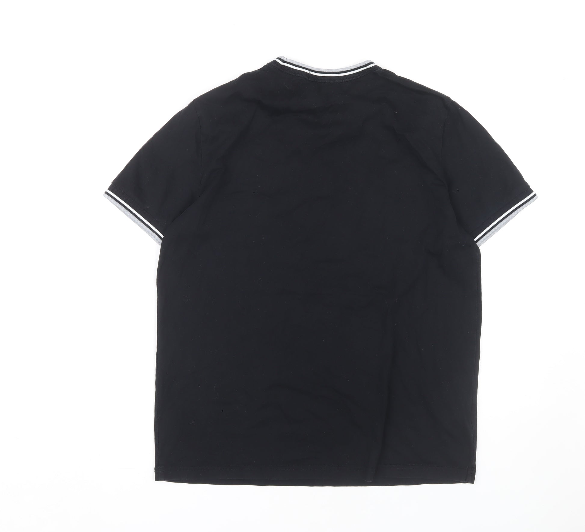 Elevate your casual wardrobe with this classic Fred Perry men's T-shirt in a versatile black shade. Perfect for any season, this T-shirt features a sleek crew neck and short sleeves, making it a stylish yet comfortable choice for everyday wear. Crafted entirely from high-quality cotton, it promises ultimate softness and breathability. The solid black design is adorned with the iconic Fred Perry logo on the chest, adding a touch of sophistication to this staple piece.Whether you're pairing it with jeans for a laid-back look or with a blazer for a smarter style, this T-shirt is adaptable to any occasion. The regular fit ensures a comfortable and flattering silhouette, while the emblematic Fred Perry branding makes it a must-have for brand enthusiasts. Machine washable for convenient care, this T-shirt is not only easy to wear but also easy to maintain. The durability of the cotton fabric ensures it will retain its shape and colour, wash after wash.Designed with attention to detail, this Fred Perry shirt comes without any visible signs of wear, making it an excellent choice if you're looking for a pre-loved T-shirt that's practically like new. Don't miss the opportunity to add this premium piece to your collection at an affordable price.