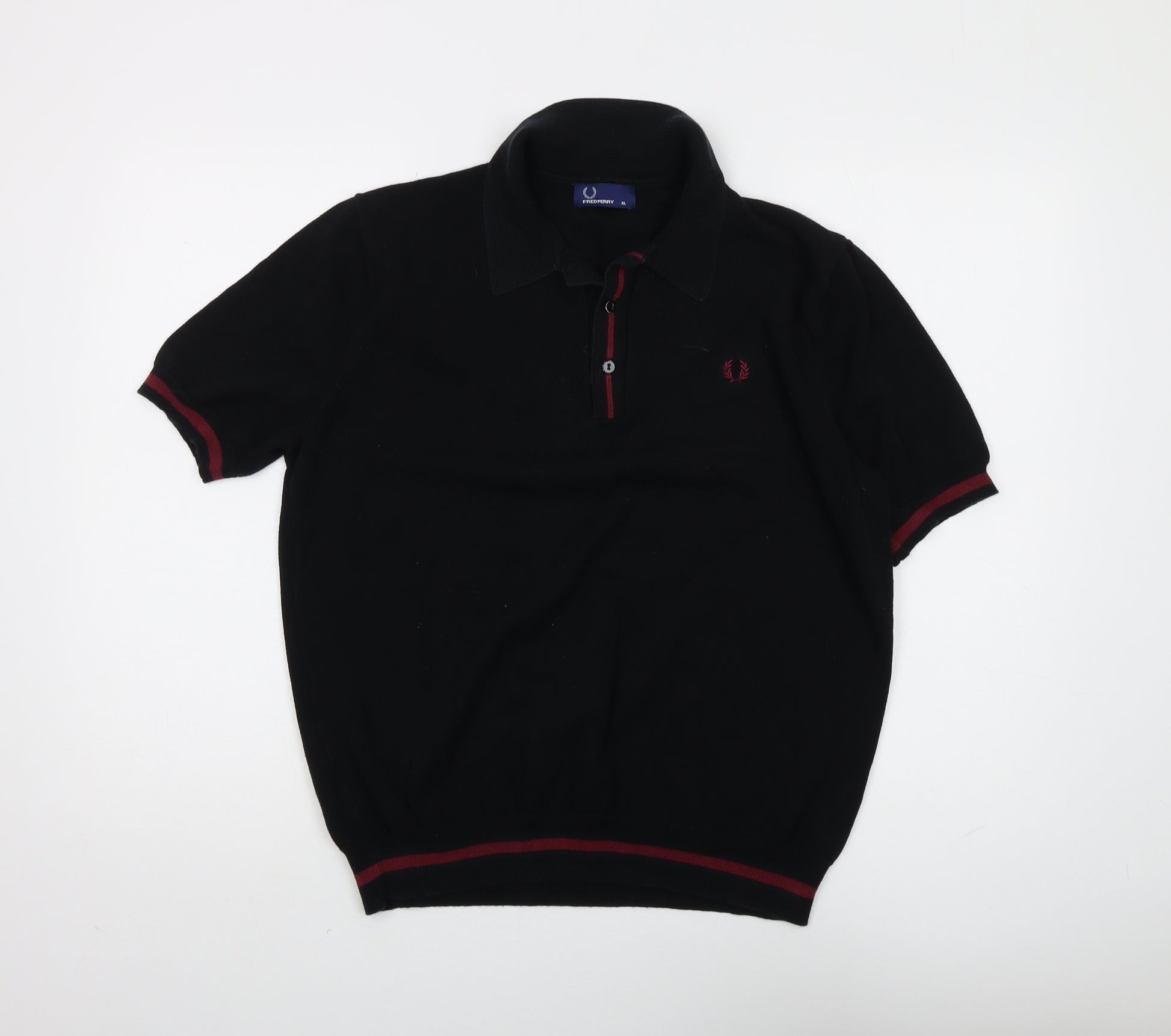 Elevate your casual wardrobe with this Fred Perry Men's Henley Jumper, perfect for those cooler autumn and winter days. Crafted from 100% soft-knit cotton, this black jumper offers a classic fit and timeless style, making it a versatile addition to any wardrobe. With a collared neckline and short sleeves, it is designed for both comfort and style. The jumper is suitable for casual occasions and is machine washable for easy care. In excellent condition, with no visible signs of wear, this Fred Perry jumper is a must-have for fashion-forward individuals looking to enhance their style. Ideal for layering or wearing on its own, this piece ensures you stay comfortable and stylish throughout the day. Don't miss the opportunity to own a piece from such a renowned brand, designed to offer both quality and heritage. Add this wardrobe staple to your collection and enjoy the timeless appeal that Fred Perry provides.