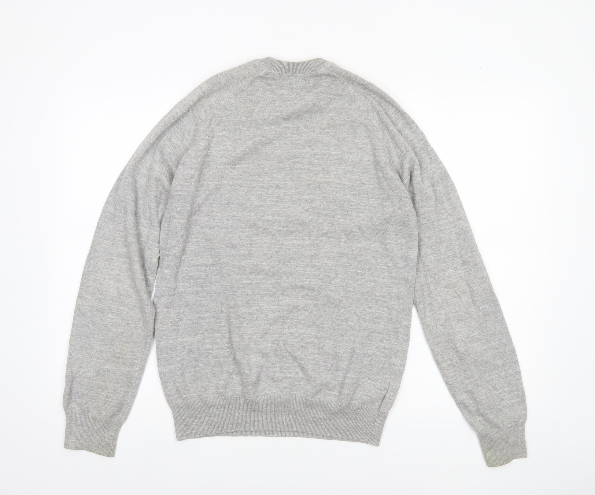 Men's Grey Wool Crew Neck Pullover Jumper XS