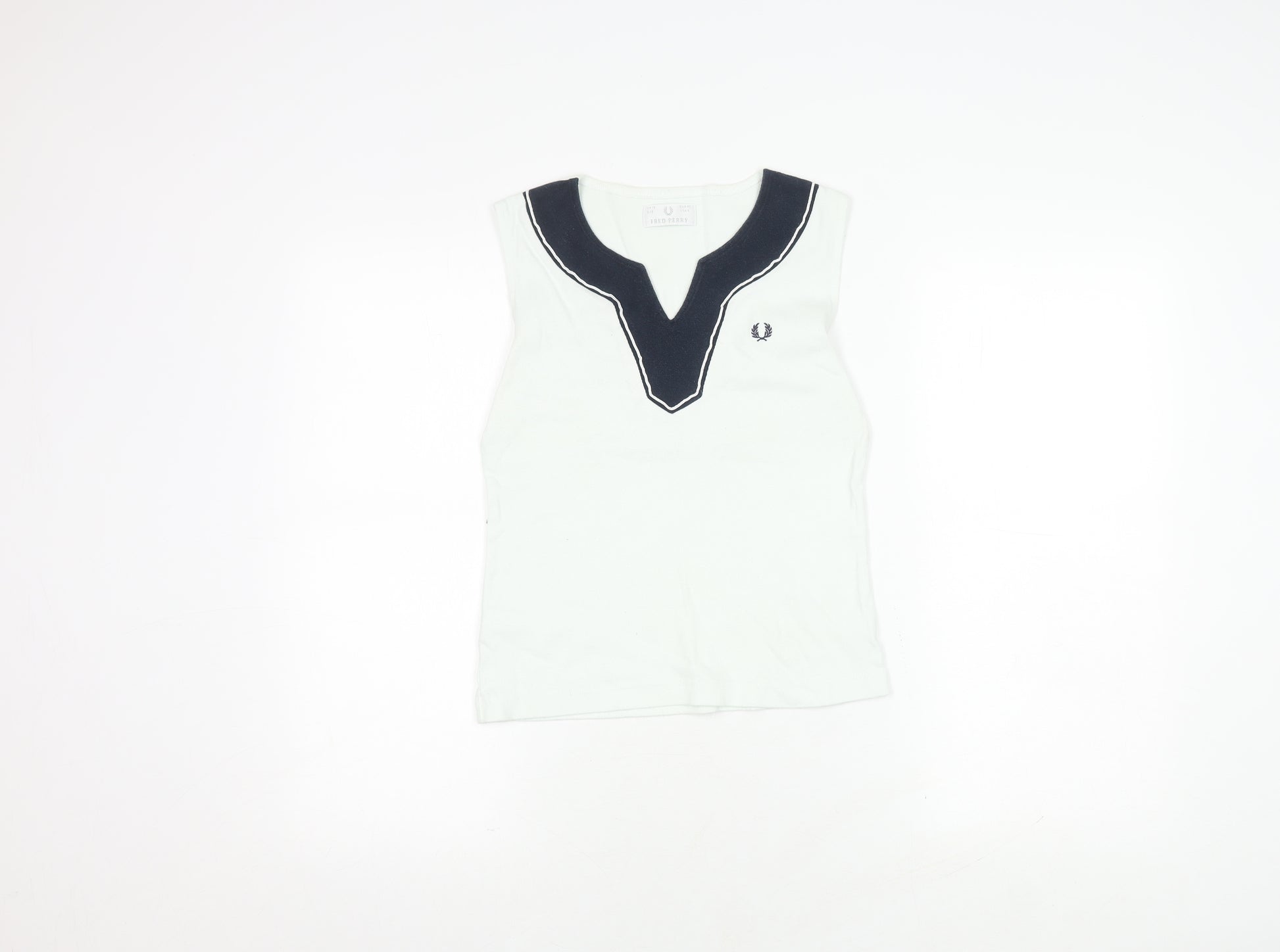 Elevate your wardrobe with this stylish Fred Perry women's top, perfect for adding a touch of elegance and comfort to your look. Crafted from 100% cotton, this top offers a soft and breathable wear, ensuring you stay comfortable all day long. The classic white shade makes it a versatile choice that pairs effortlessly with any outfit. The sleeveless design and V-neck add a modern and chic touch, suitable for layering or wearing on its own during warmer days. Ideal for casual outings, this top can be dressed up or down according to your mood. Despite showing slight wear, this piece is in excellent condition, offering a great value for a used item. Incorporate it into your collection for a timeless and relaxed style. The machine-washable fabric ensures easy maintenance, making it a hassle-free addition to your rotation. Get your hands on this essential piece today and enjoy its timeless appeal.