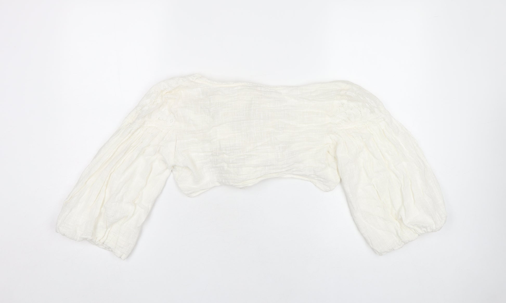 Women’s White Cotton Wrap Blouse M Puff Sleeve Summer