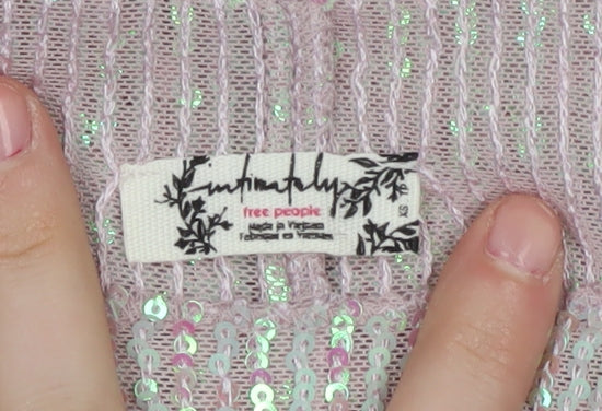 Shine at any gathering with this stunning Free People women's pink sequin blouse. Perfect for a cocktail party or a night out, this elegant long sleeve blouse features a flattering boat neck and a vibrant pink colour that exudes femininity and style. The sequin accents add a touch of glamour, making this blouse a standout piece in any wardrobe. Made from a comfortable blend of polyester and elastane, this top ensures a great fit while offering flexibility and ease of movement. Designed for the modern woman, it brings together style, comfort, and a hint of sparkle. Pair it with a sleek pair of trousers or your favourite skirt for an effortlessly chic look. Ideal for the spring and summer months, this blouse is sure to become a favourite go-to piece for those special occasions. Hand wash only to maintain its impeccable appearance. In excellent condition with no visible wear or damage, it's ready to become the centrepiece of your outfit. Enjoy the perfect blend of style and comfort with this exquisite Free People blouse.