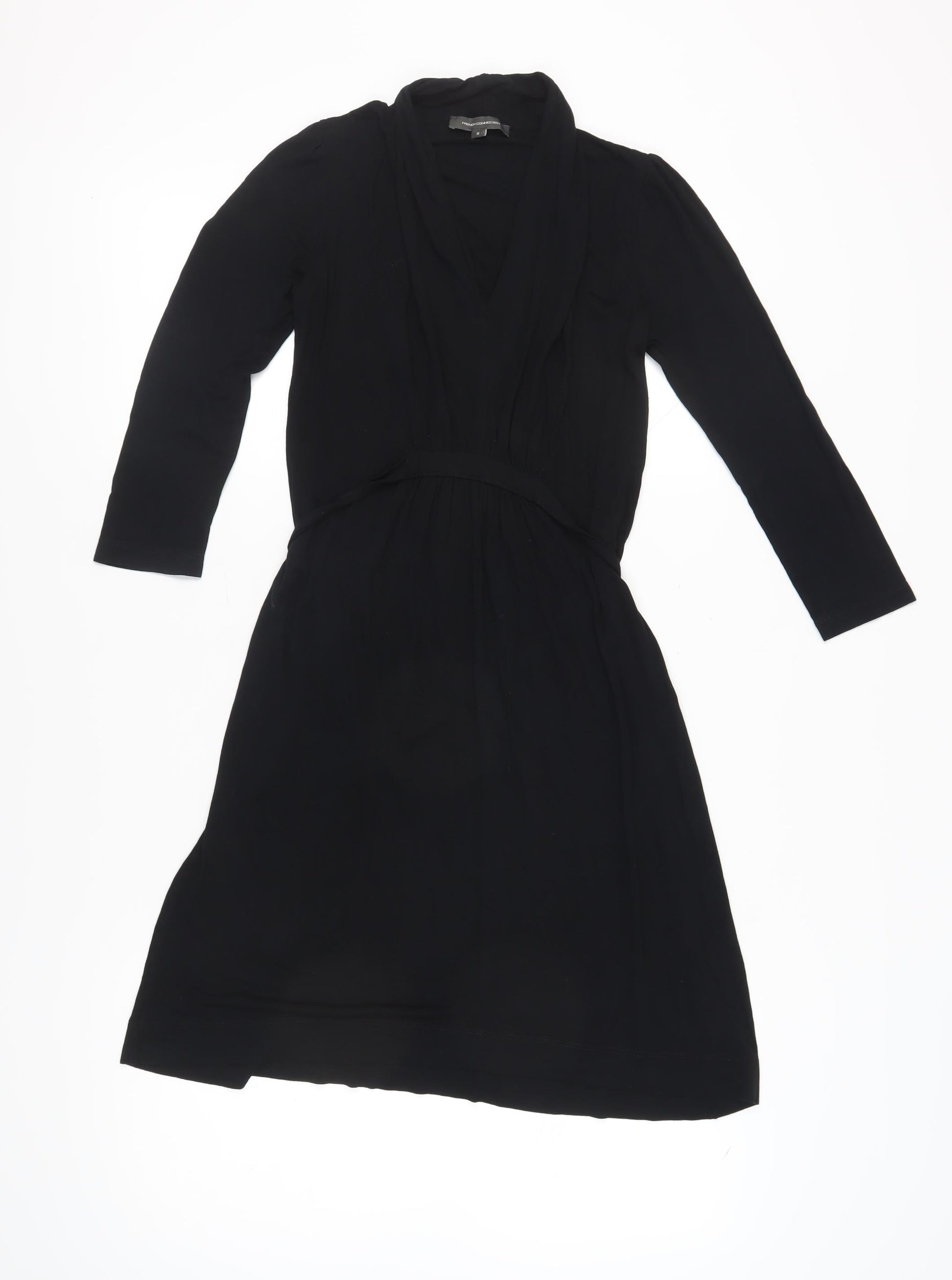 Discover the elegance of the French Connection Black Dress, a perfect addition to any wardrobe. Tailored for women, this dress combines classic style with contemporary flair. Designed in a figure-flattering size 6, this piece is made to complement a range of body types. Its deep black hue is universally flattering and versatile, ideal for pairing with a variety of accessories to suit any occasion. Crafted from 100% viscose fabric, it provides a comfortable, breathable fit that's perfect for both day and evening wear. The long sleeves add a touch of sophistication, making it suitable for cooler seasons. Whether you're heading to the office or a casual get-together, this dress is a go-to choice. Despite its used condition, it has been maintained excellently with only gentle signs of wear visible. Elevate your fashion game with this chic and adaptable dress from French Connection.
