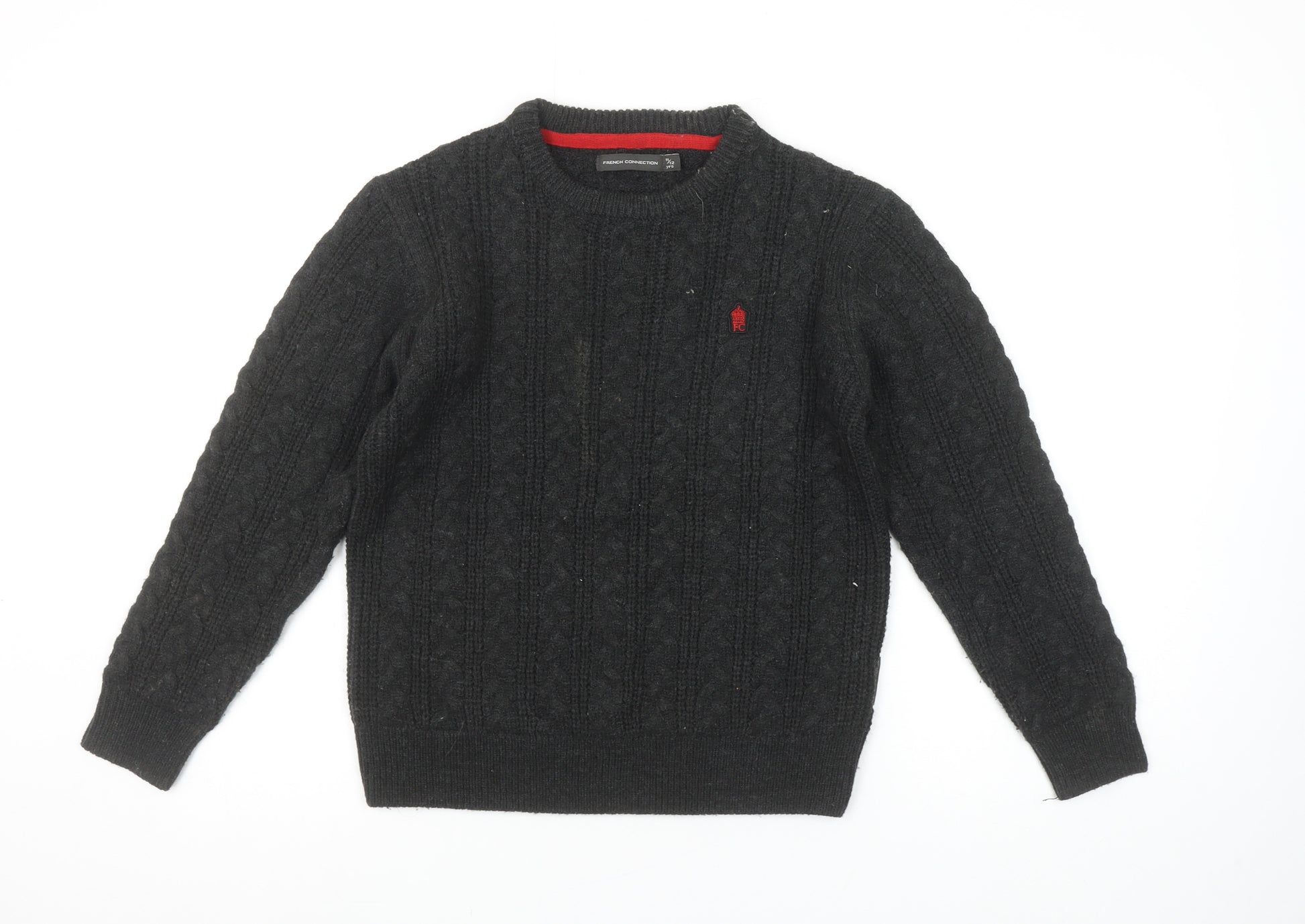 Keep your young one cosy and stylish with this French Connection Boys Cable-Knit Jumper, perfect for chilly days and casual outings. Designed in a timeless black shade, this jumper offers a luxurious blend of acrylic and wool for warmth and comfort without compromising durability. The detailed cable-knit texture gives it a classic appearance that’s both versatile and effortlessly smart, suitable for layering over shirts or wearing solo. The crew neckline and long sleeves provide a snug fit, making it ideal for autumn and winter seasons. Featuring the unmistakable French Connection emblem embroidered in red on the chest, it adds a subtle dash of character without being overbearing. This regular-fit jumper has ribbed cuffs and hem for secure wear and a polished silhouette. The mid-weight knit ensures breathability yet adequate insulation, making it perfect for everyday wear, school, or special family occasions. The soft-touch fabric feels gentle on young skin while being machine washable for easy care. Carefully inspected, this piece is in excellent pre-owned condition with minor natural signs of wear expected from gentle use but no major flaws or damage. Elevate your boy’s wardrobe with a high-quality designer knit at a fantastic value. Comparable French Connection boys’ jumpers retail for around £40 new — this preloved piece offers premium quality at a fraction of the price. Whether for a weekend outing, a school day, or relaxed indoor wear, this jumper is a stylish and practical staple that pairs effortlessly with jeans or chinos for a complete, coordinated look.