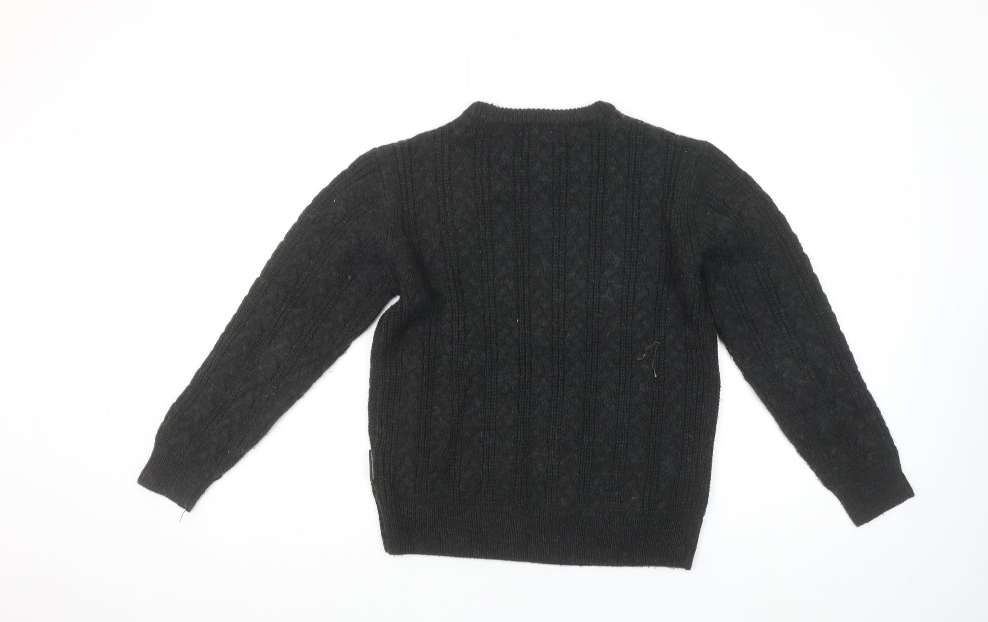 Boys Black Cable-Knit Jumper 11-12 Years Wool Blend