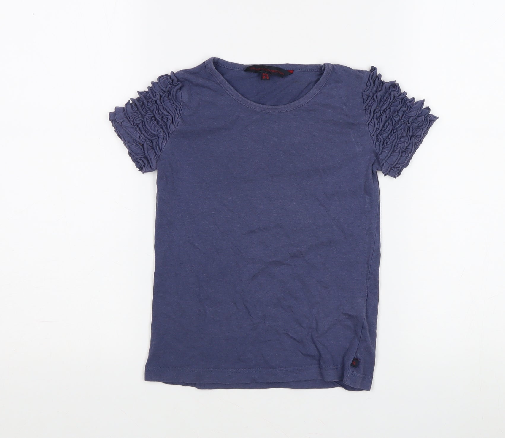 Bring a touch of elegance to your child's casual wardrobe with this French Connection girls' t-shirt. Crafted from a soft blend of 55% cotton and 45% modal, it ensures a comfortable wear all day long. The rich blue shade adds a pop of colour, making it a versatile item easy to pair with any bottom. Its short sleeves feature a subtle ruffle detail, adding an element of flair to the classic pullover style. Featuring a crew neck and solid pattern, this jersey fabric t-shirt is stylish and practical for everyday activities. Perfect for casual occasions, this piece can transition seamlessly from school days to playdates. Machine washable for easy care, it offers durability along with its smooth, breathable fabric. With a focus on simplicity and modern design, this French Connection t-shirt embodies both comfort and style. Ideal for girls aged 8-9 years, it's a must-have for any young fashionista's wardrobe.