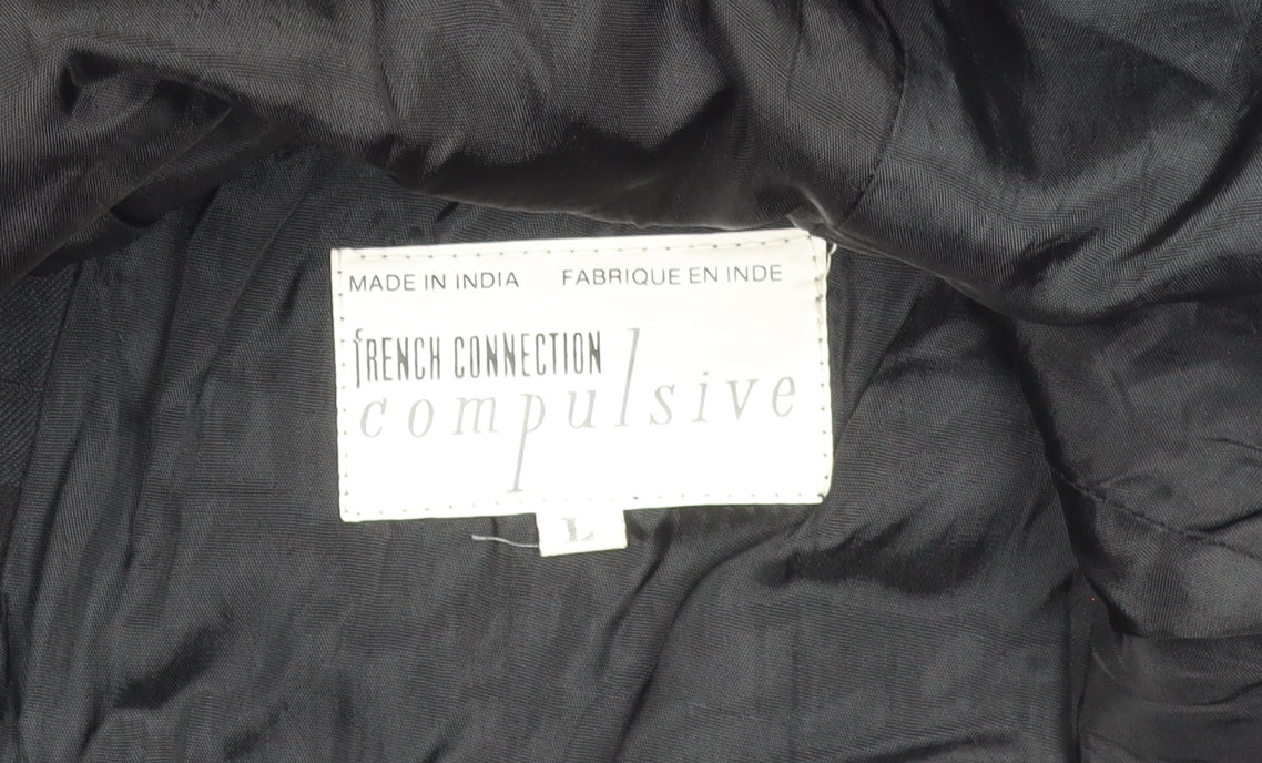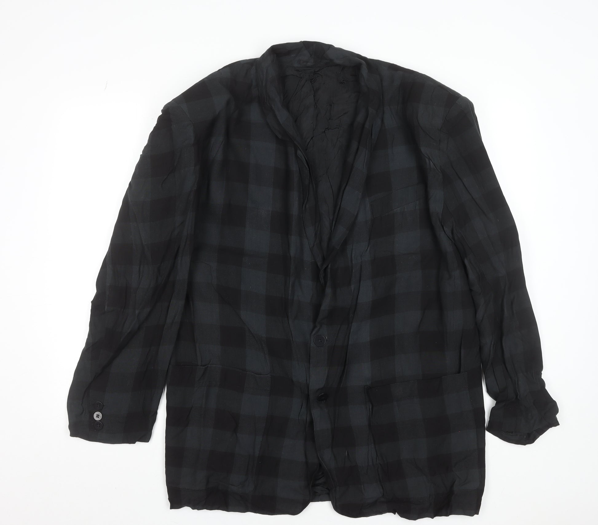 This French Connection men's black check blazer is an ideal balance between casual confidence and refined elegance. Crafted in India from pure cotton, it provides a lightweight yet structured silhouette perfect for layering throughout the year. The subtle black check pattern adds modern appeal while remaining versatile enough for both informal and semi-formal wear. Designed in a regular fit with a two-button single-breasted front and a notch lapel, this blazer delivers lasting comfort and timeless style. The jacket features two generous front patch pockets, a single chest pocket for a hint of classic tailoring, and an interior pocket for practicality. The ventless back ensures a streamlined drape, while the soft cotton lining enhances wearability. Its dark tone allows it to pair effortlessly with chinos, dress trousers, or jeans, making it suitable for office wear, evenings out, or relaxed social occasions. Subtle detailing such as two functional sleeve buttons and lightweight construction complete the piece with understated sophistication. This blazer, in very good pre-owned condition, shows minimal signs of gentle use with light creasing. It reflects the quality associated with the French Connection name, offering superior craftsmanship and versatile wear for the modern man. A stylish addition to any wardrobe, this piece works beautifully layered over crisp shirts or knitwear across seasons — a smart-casual essential that blends tradition with a contemporary urban edge. Perfect for autumn styling, this check-pattern blazer brings texture and distinction to everyday dressing.