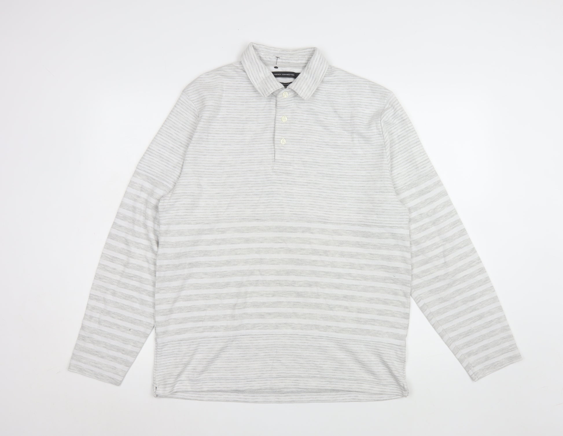 Men’s Grey Striped Long Sleeve Polo Shirt L Regular Fit