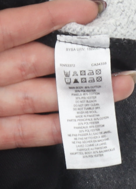 Step into effortless comfort and casual style with these French Connection men's jogger trousers in versatile black with contrasting grey side panels. Designed from a soft jersey-knit fabric, they blend 80% cotton and 20% polyester for breathability, durability, and an easy-care finish. The regular fit makes them comfortable for everyday wear, while the elastic waistband with drawstring ensures a secure, flexible fit suited for all-day comfort. The tapered leg design adds a modern, athletic look that works well both for lounging and casual outings. Practical slash pockets at the sides offer convenient storage, complemented by a rear pocket with a button fastening for essentials. The minimalist design is accented by a subtle French Connection crown logo near the pocket, adding a touch of style without being overstated. With ribbed cuffs at the ankles, these trousers stay neatly in place for a tidy silhouette. The jogger construction provides unrestricted movement and a clean, tailored aesthetic ideal for travel, errands, or laid-back weekends.Finished in a warm yet breathable cotton-blend fabric, these joggers are suitable for autumn, winter, and spring. Machine washable for easy care, they maintain both their softness and shape through regular use. The black and grey colourway ensures versatility, easily paired with hoodies, T-shirts, or casual shirts for a polished off-duty look. In excellent pre-owned condition with light overall wear, these trousers are a staple addition to any modern man’s wardrobe. Offering an ideal balance between style and comfort, these French Connection joggers bring functionality, casual sophistication, and all-day wearability at an exceptional value.