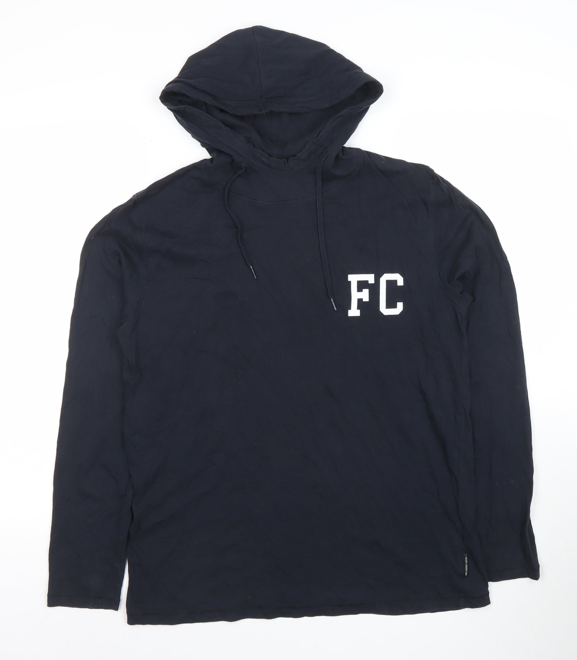 Add effortless style to your casual wear collection with this French Connection men's black pullover hoodie in size L. Crafted from 100% soft cotton jersey, this lightweight hoodie offers breathable comfort that makes it ideal for layering during the autumn, spring, and winter seasons. The clean black tone and bold ‘FC’ logo on the chest lend it a distinctive college-inspired aesthetic that’s both simple and stylish. Designed with a drawstring hood and a regular fit, it ensures a relaxed yet flattering silhouette that suits everyday wear. The soft cotton fabric provides ease of movement and lasting comfort, while the premium construction reflects French Connection’s focus on quality. Perfect for teaming with jeans or joggers, it’s equally suitable for lounging at home or wearing out for casual outings. The long sleeves and breathable material make it adaptable for cool weather, while the pullover design keeps things effortless. Whether you’re updating your off-duty rotation or looking for a versatile staple piece, this hoodie delivers timeless appeal. Machine washable for easy care, it provides excellent durability and everyday practicality. Overall, a superb option for men seeking style, comfort, and minimalism in one. Lightly worn and in excellent condition, this hoodie still holds its shape and colour beautifully — a great find for fans of high-quality casual classics. Make it your go-to pullover for dependable comfort and modern style every season.