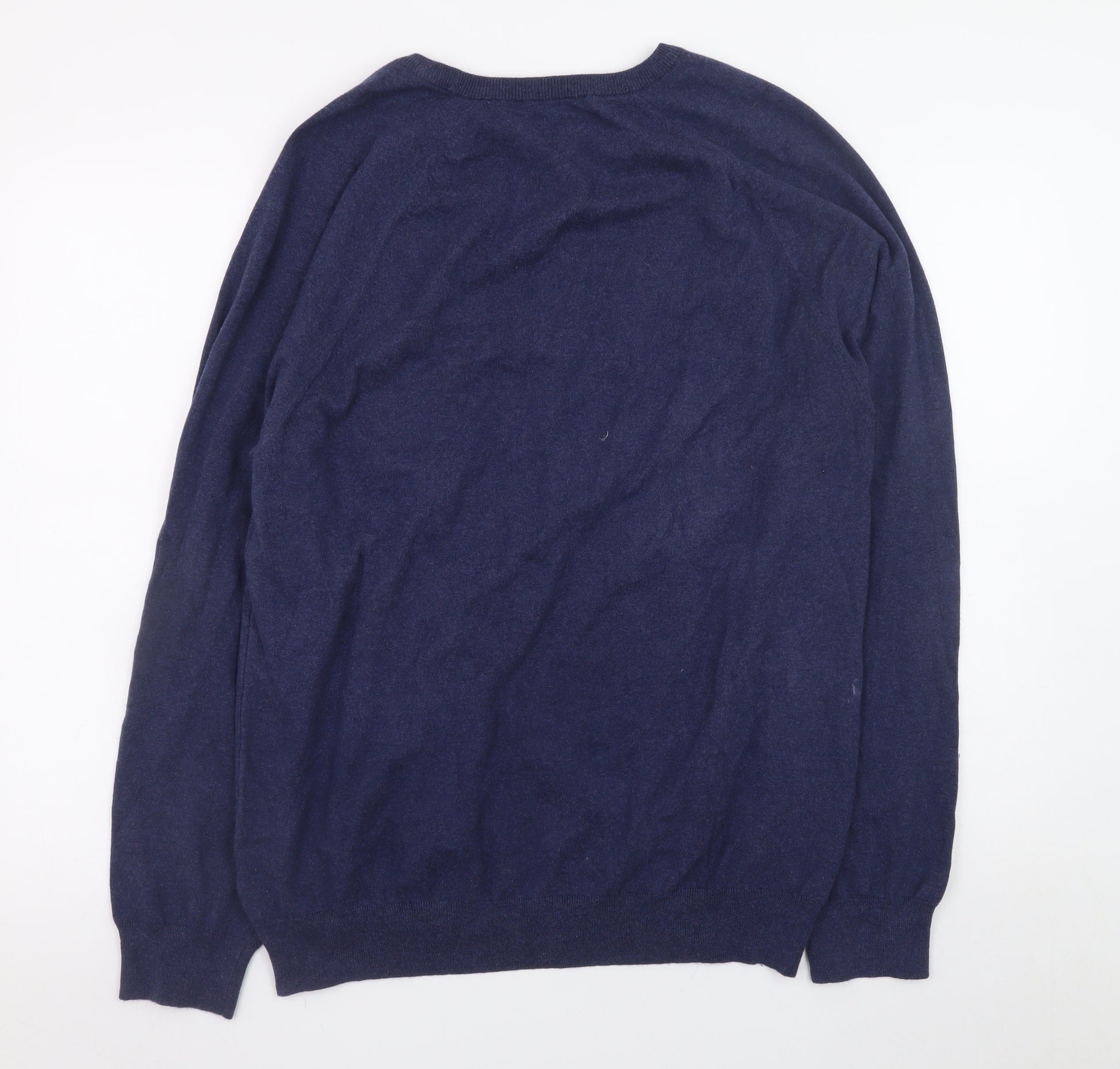 Men's Blue Cotton Blend Crew Neck Jumper L