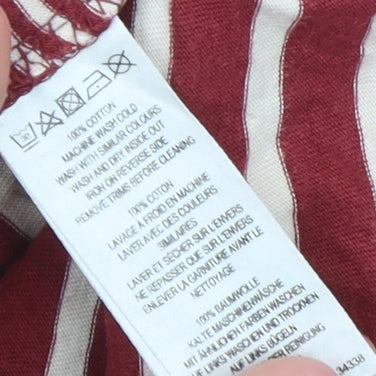 Men's Red Striped Long Sleeve Cotton T-Shirt XS