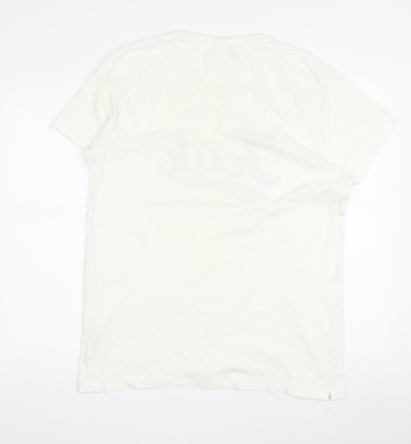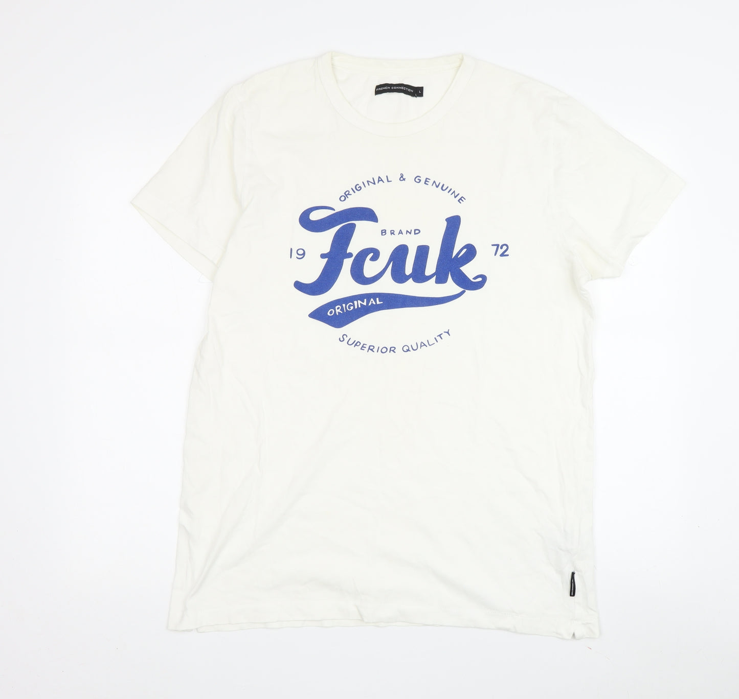 Elevate your casual wardrobe with this French Connection men's T-shirt. Crafted from soft, breathable cotton, it offers all-day comfort and effortless style. This classic white T-shirt features a bold 'Fcuk' graphic print, making it a perfect statement piece for any casual outing or relaxed gathering. With its versatile crew neck and short sleeves, it can be paired easily with jeans or chinos for a laid-back look. Designed for the modern man, it embraces simplicity with an edge, perfect for spring, summer, and autumn seasons. Its logo accent adds a touch of brand recognition, appealing to fans of French Connection's iconic style. Machine washable for easy care, this tee balances practicality with fashion. Ideal for those who appreciate quality and understated design, this T-shirt is a must-have addition to your collection. Whether you're heading out for a coffee or just lounging with friends, this T-shirt is sure to add a fresh element to your everyday apparel.