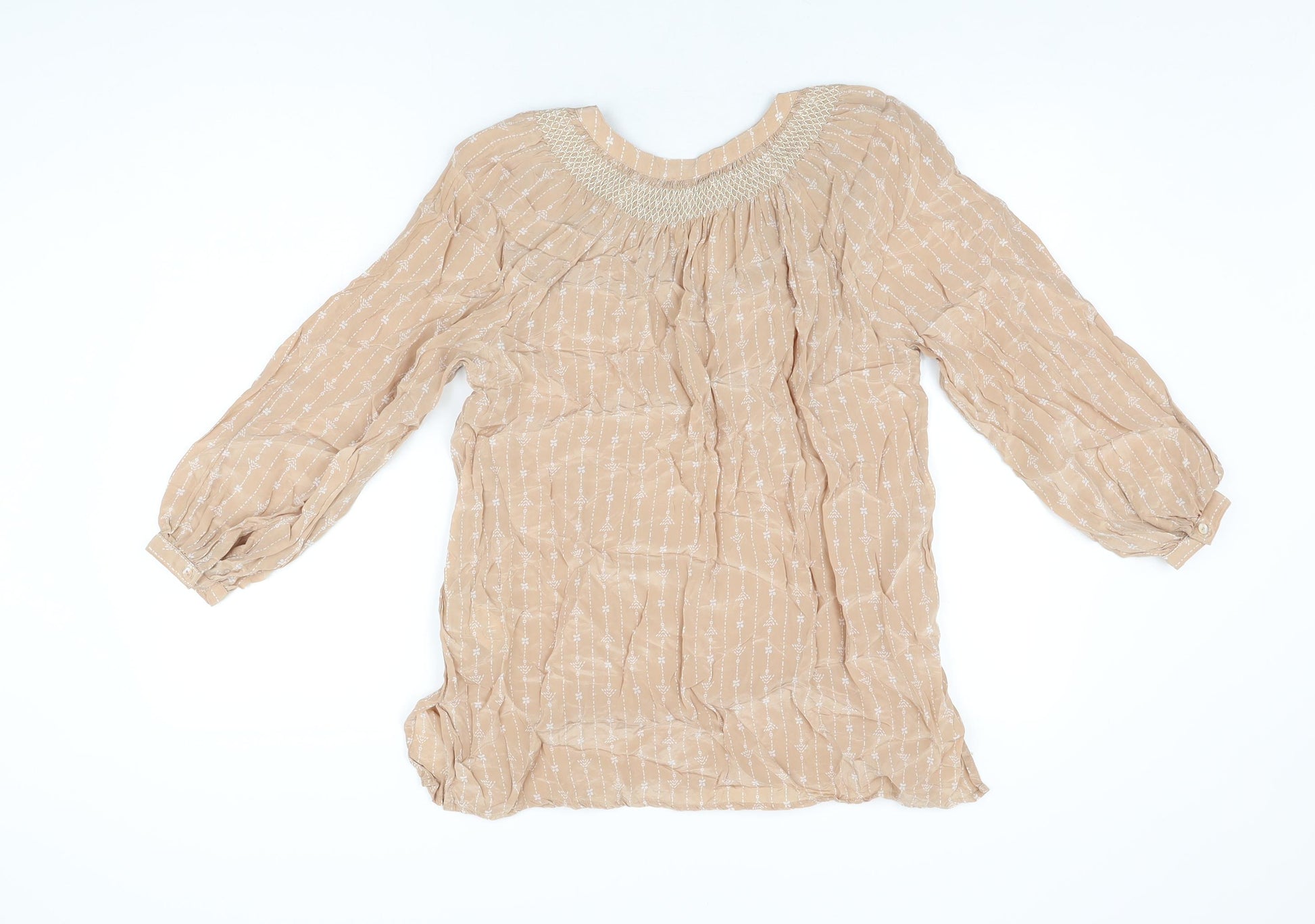 Regular price£12.75£1275Regular priceUnit price / perSale price £12.75 GBPMonsoon Womens Beige Floral V-Neck Short Sleeve T-Shirt M