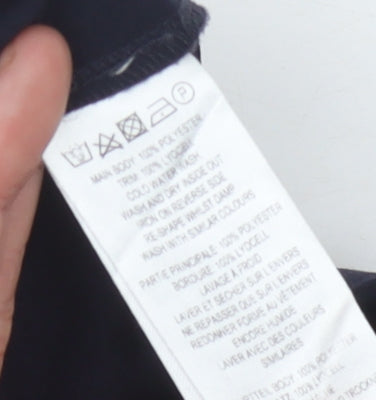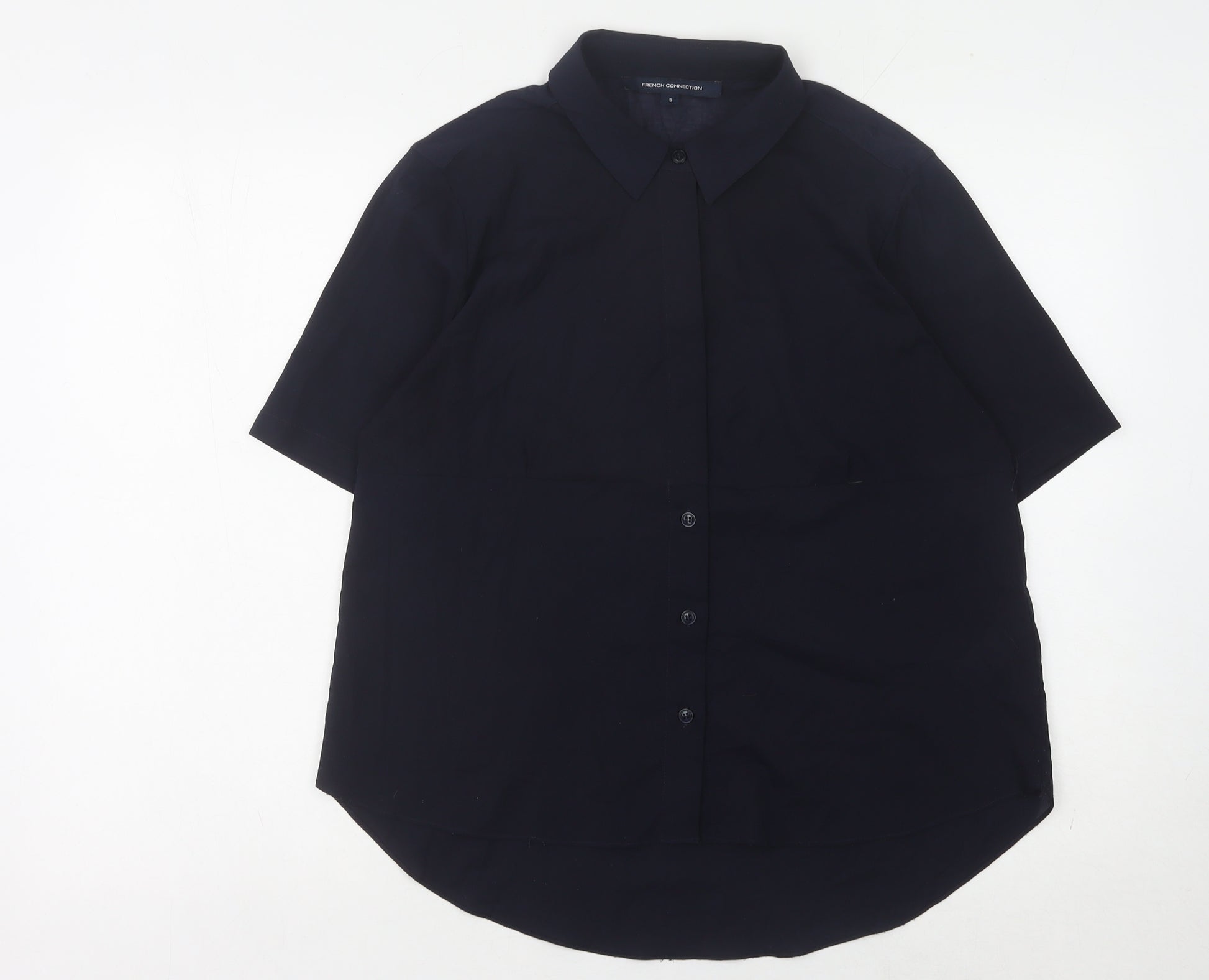 Elevate your casual wardrobe with this classic French Connection button-up shirt, designed for women who appreciate timeless style. Crafted in a size small, this chic shirt features a sleek collared neckline and contemporary short sleeves, making it ideal for versatile styling. The solid black colour ensures a clean, elegant look, while the 100% polyester material provides a smooth, comfortable feel that moves with you throughout the day. Suitable for all seasons, this shirt transitions effortlessly from casual daywear to stylish evening wear. Whether paired with jeans for a relaxed outing or tucked into a skirt for a polished office look, its simplicity and versatility make it a must-have staple in any fashion-forward wardrobe. Enjoy the understated elegance and quality craftsmanship of French Connection with this stylish addition that promises to become one of your go-to favourites.