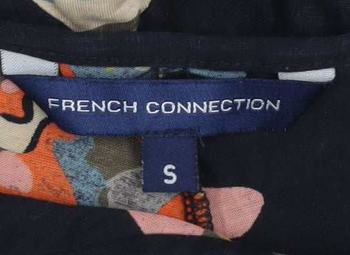 Add a touch of vibrancy to your wardrobe with this stunning French Connection camisole. Made from 100% Lyocell, this top offers a smooth and soft texture that feels comfortable against the skin. Ideal for the spring and summer months, it sports a floral multicoloured pattern against a classic black background, making it both chic and versatile. The spaghetti straps and V-neckline add a touch of elegance, while the regular fit ensures relaxed comfort. Perfect for casual outings or cocktail parties, this camisole can be seamlessly integrated into your everyday style. Pair it with jeans for a laid-back look or dress it up with a skirt for more formal occasions. The pullover design makes it easy to wear on-the-go, and its machine washable property ensures effortless maintenance. Despite being pre-loved, the camisole remains in excellent condition with no visible damage, offering style and sophistication at a fraction of the original cost. Don't miss the chance to upgrade your collection with this wonderful piece.
