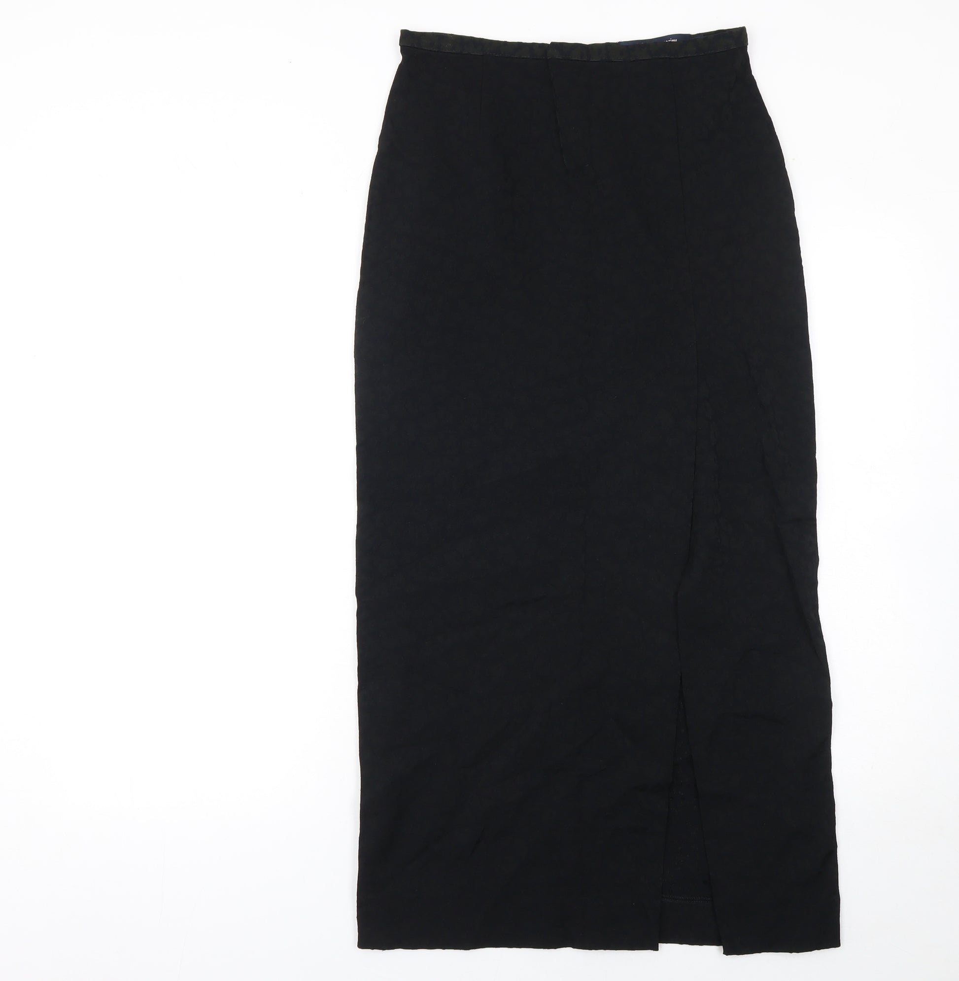 This elegant French Connection women's skirt offers a timeless, flattering silhouette crafted for versatile wear across the seasons. Styled in sleek black, this long pencil skirt enhances your figure with its sophisticated straight cut, ideal for both professional and evening occasions. The subtle slit adds a hint of movement and comfort, allowing for a graceful stride, while maintaining its poised and polished look.Made from a soft blend of 68% polyamide and 32% acetate, the skirt drapes beautifully and feels luxurious against the skin. The fabric’s texture adds depth and refinement, making it a perfect choice for office outfits, dinner dates, and formal gatherings. Its mid-rise fit ensures comfort and a flattering waistline, fastening securely with a discreet button and zip closure. The durable construction and high-quality material speak to French Connection’s renowned craftsmanship.This black long skirt transitions seamlessly from day to night – pair it with a crisp shirt and heels for work, or style it with a statement top and accessories for an evening event. The versatile colour and minimalist design make it a wardrobe staple, complementing a range of tops, jackets, and footwear. Suitable for all seasons thanks to its balanced weight and breathable fabric, it offers effortless sophistication for any occasion.In excellent pre-owned condition, this skirt shows minimal signs of wear and has been well cared for. With its quality build and timeless appeal, it remains a stylish wardrobe essential. Perfect for women who appreciate classic elegance and reliable comfort, this French Connection piece adds refined versatility to contemporary attire – an ideal choice for business, formal, or smart casual ensembles.