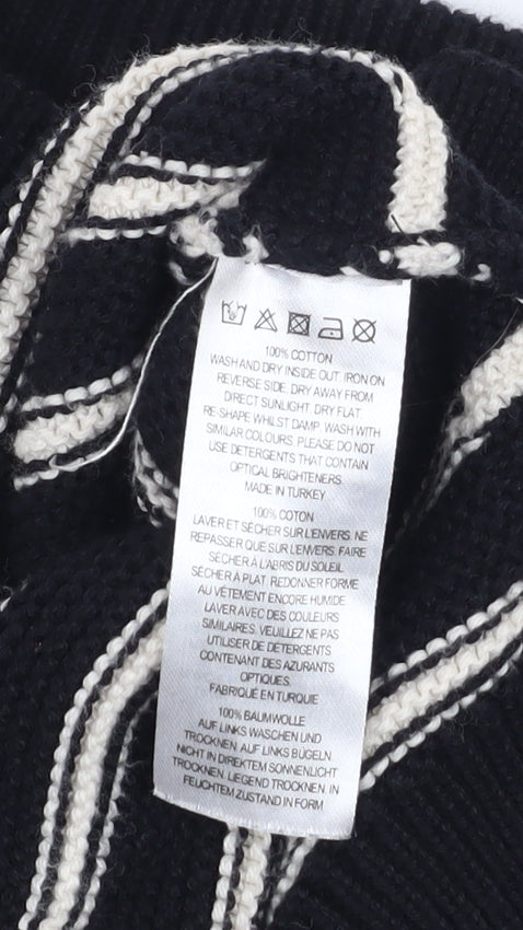 Women's Black White Striped Cotton Jumper L