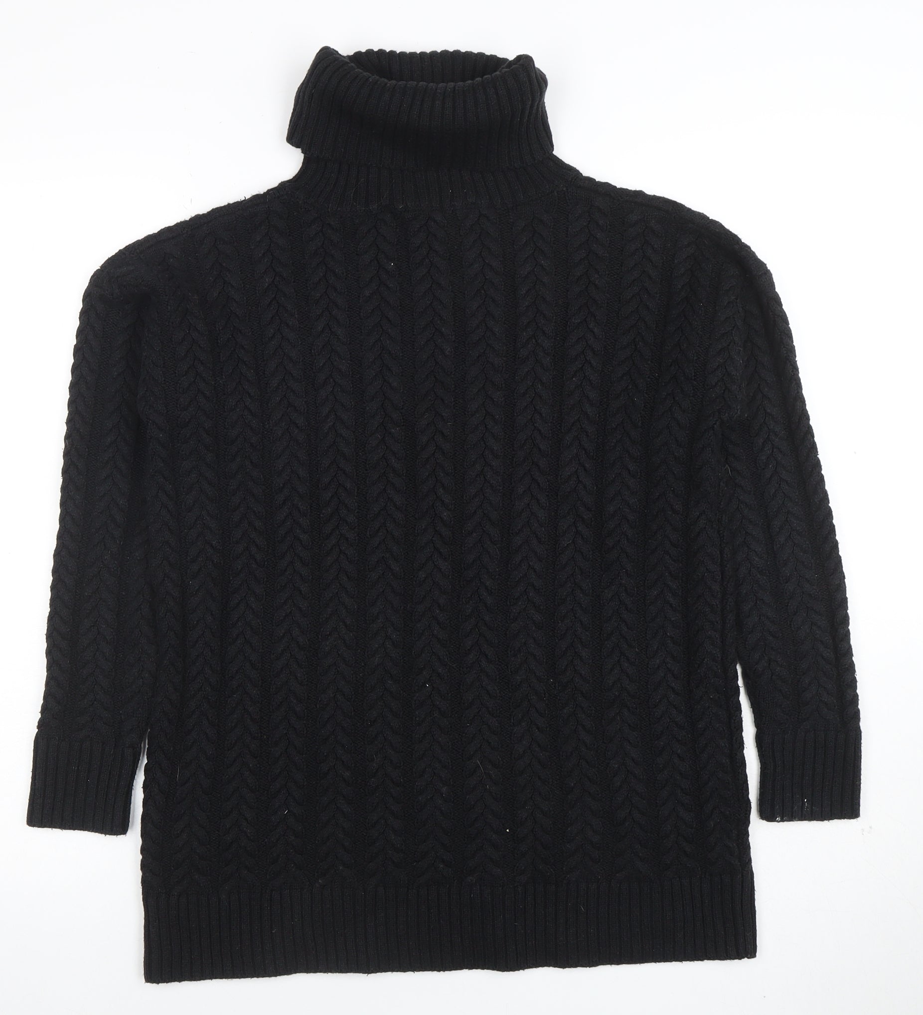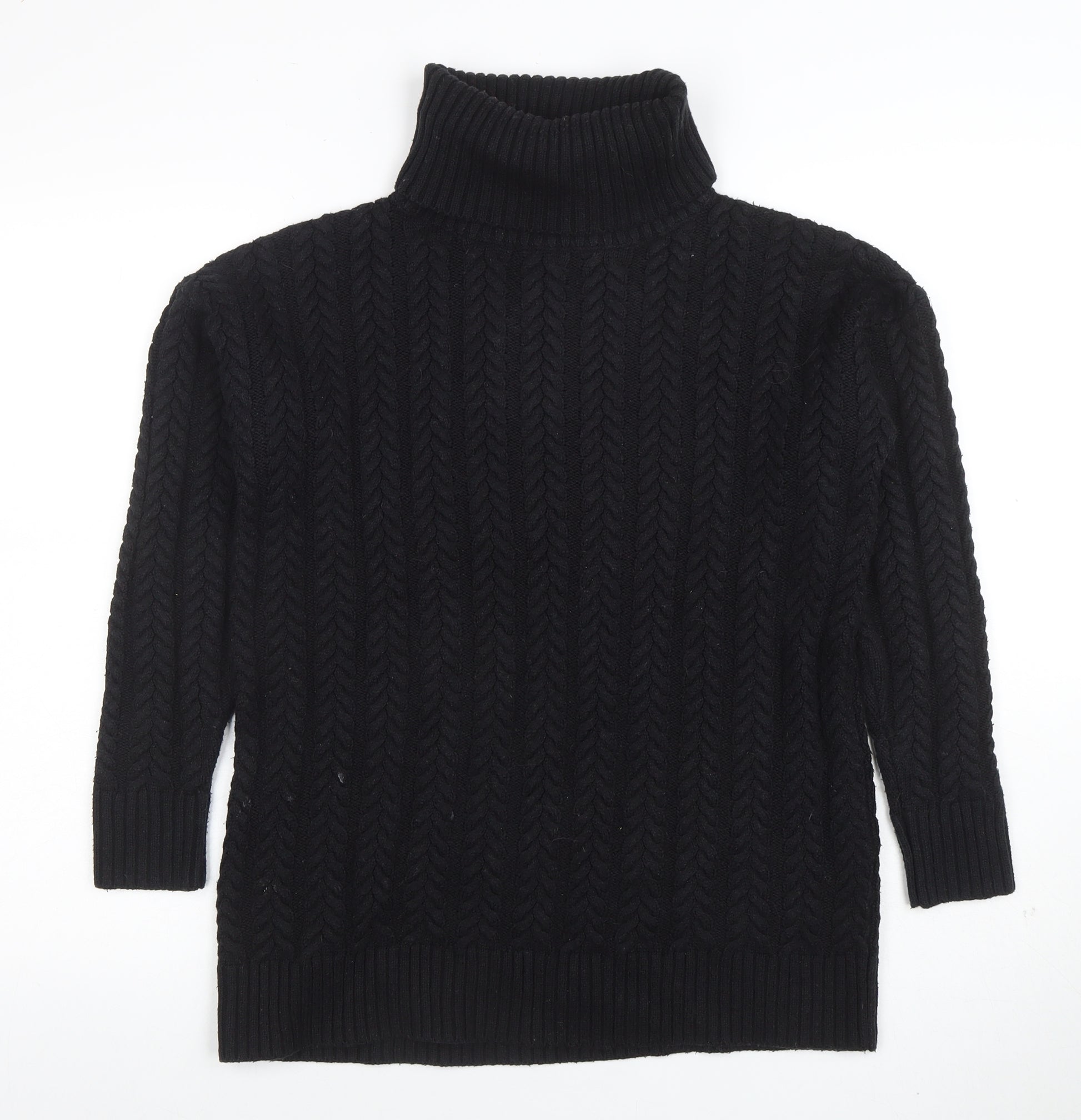 Womens Black XS Cable Knit Roll Neck Jumper