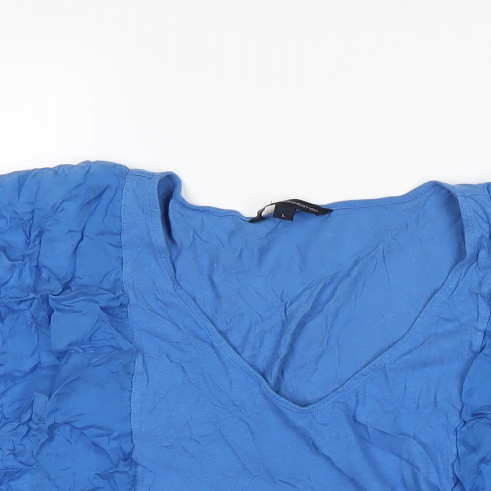 Womens Blue Cotton Basic T-Shirt Size L V-Neck